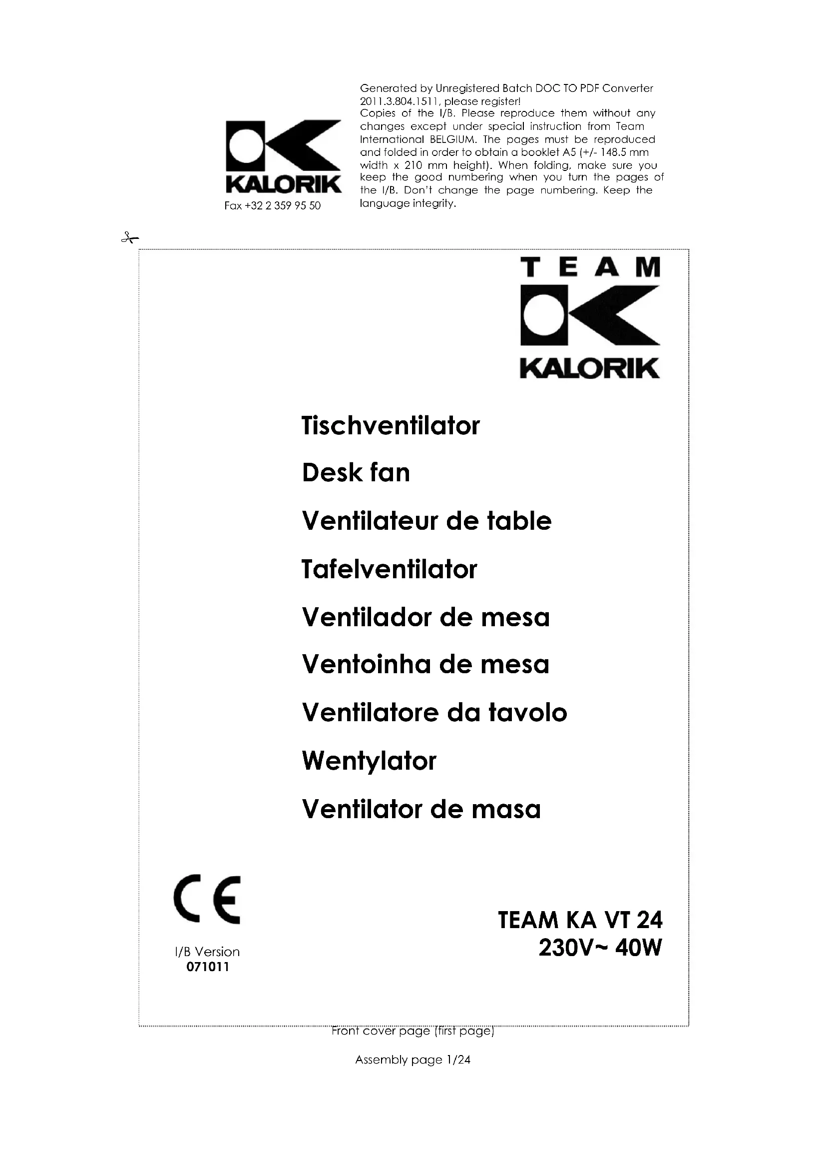 KA VT 24 - Ventilateur TEAM - Notice d'utilisation et mode d'emploi gratuit