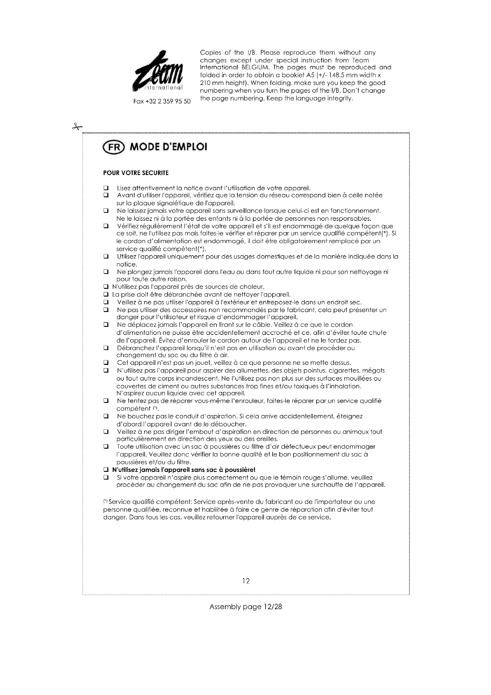 ST 9 ET - Aspirateur TEAM - Notice d'utilisation et mode d'emploi gratuit