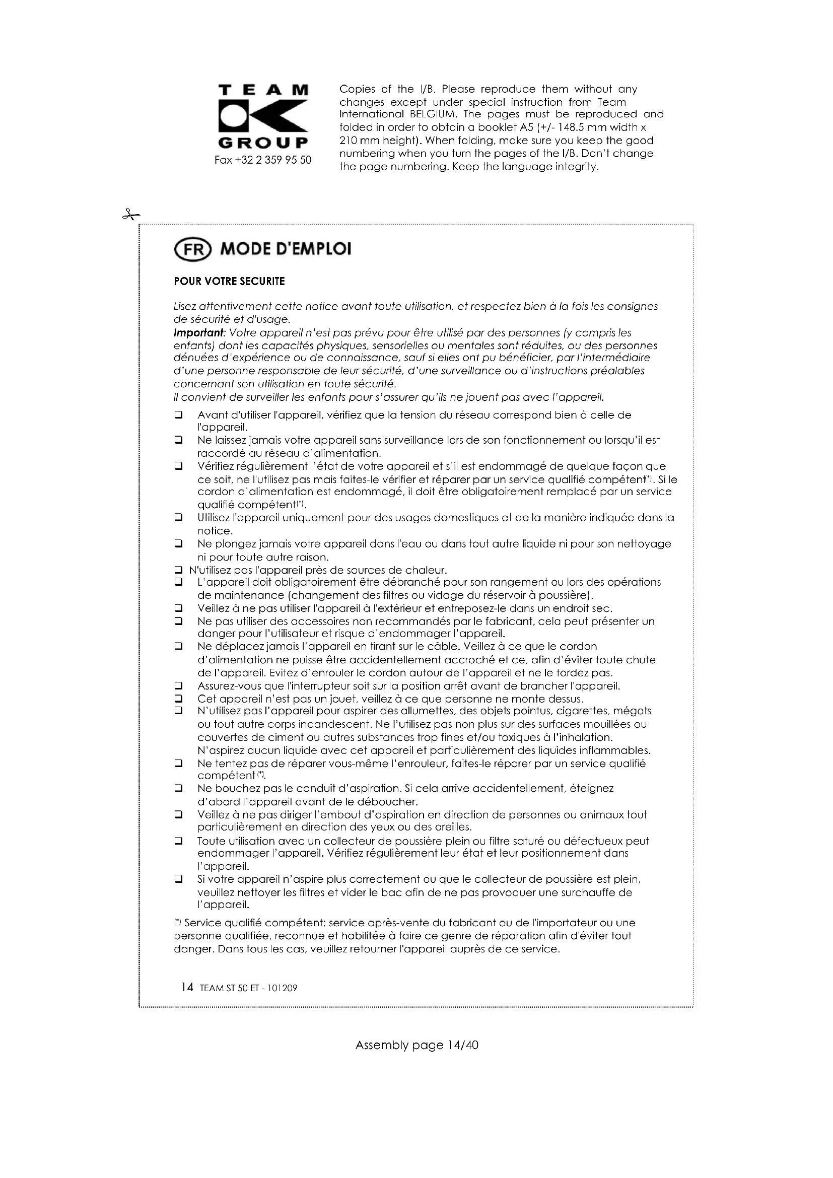 MODE D'EMPLOI ST 50 TEAM