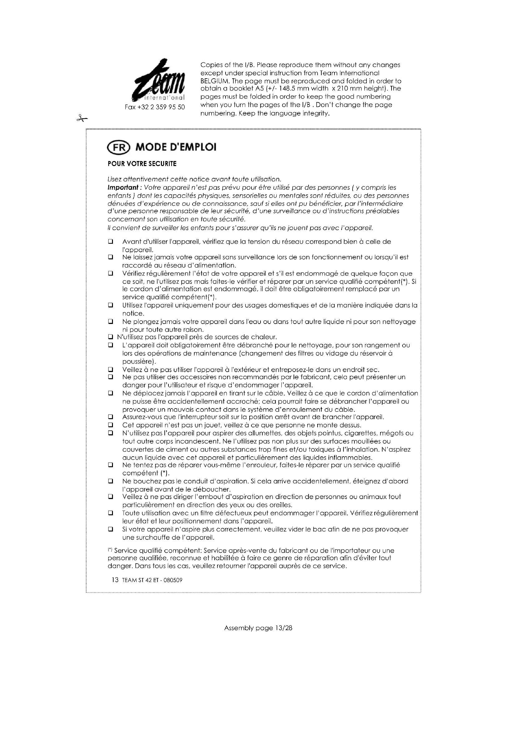 ST 42 - Aspirateur TEAM - Notice d'utilisation et mode d'emploi gratuit