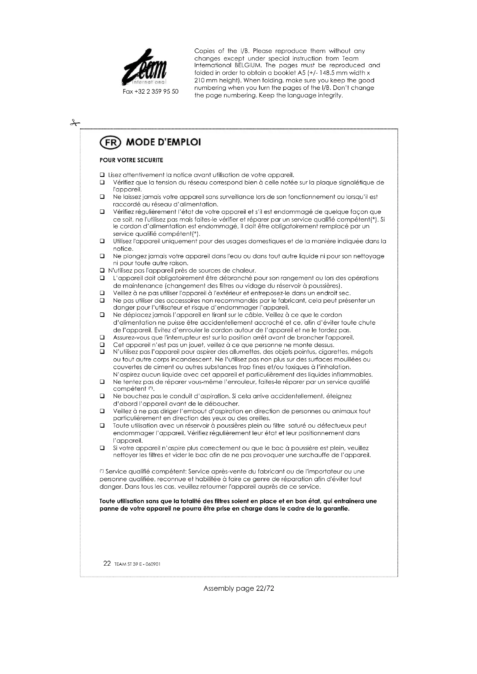 ST 39 E - Aspirateur TEAM - Notice d'utilisation et mode d'emploi gratuit
