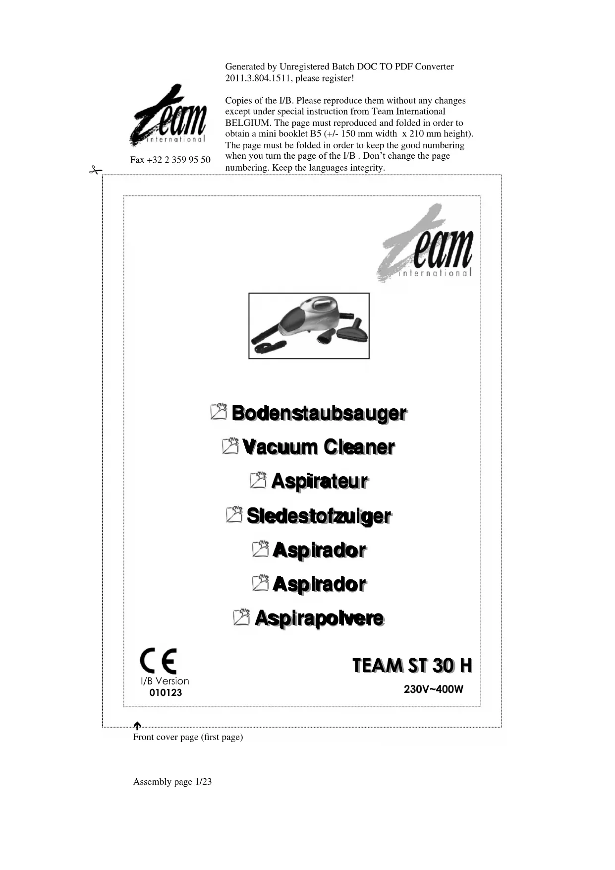 ST 30 H - Aspirateur TEAM - Notice d'utilisation et mode d'emploi gratuit