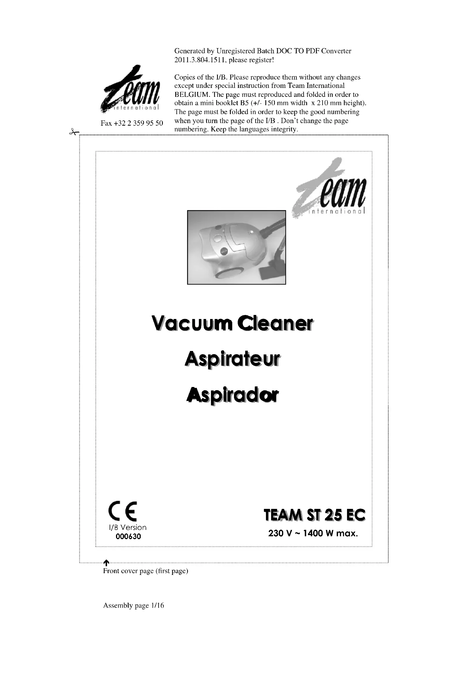 ST 25 EC - Aspirateur TEAM - Notice d'utilisation et mode d'emploi gratuit
