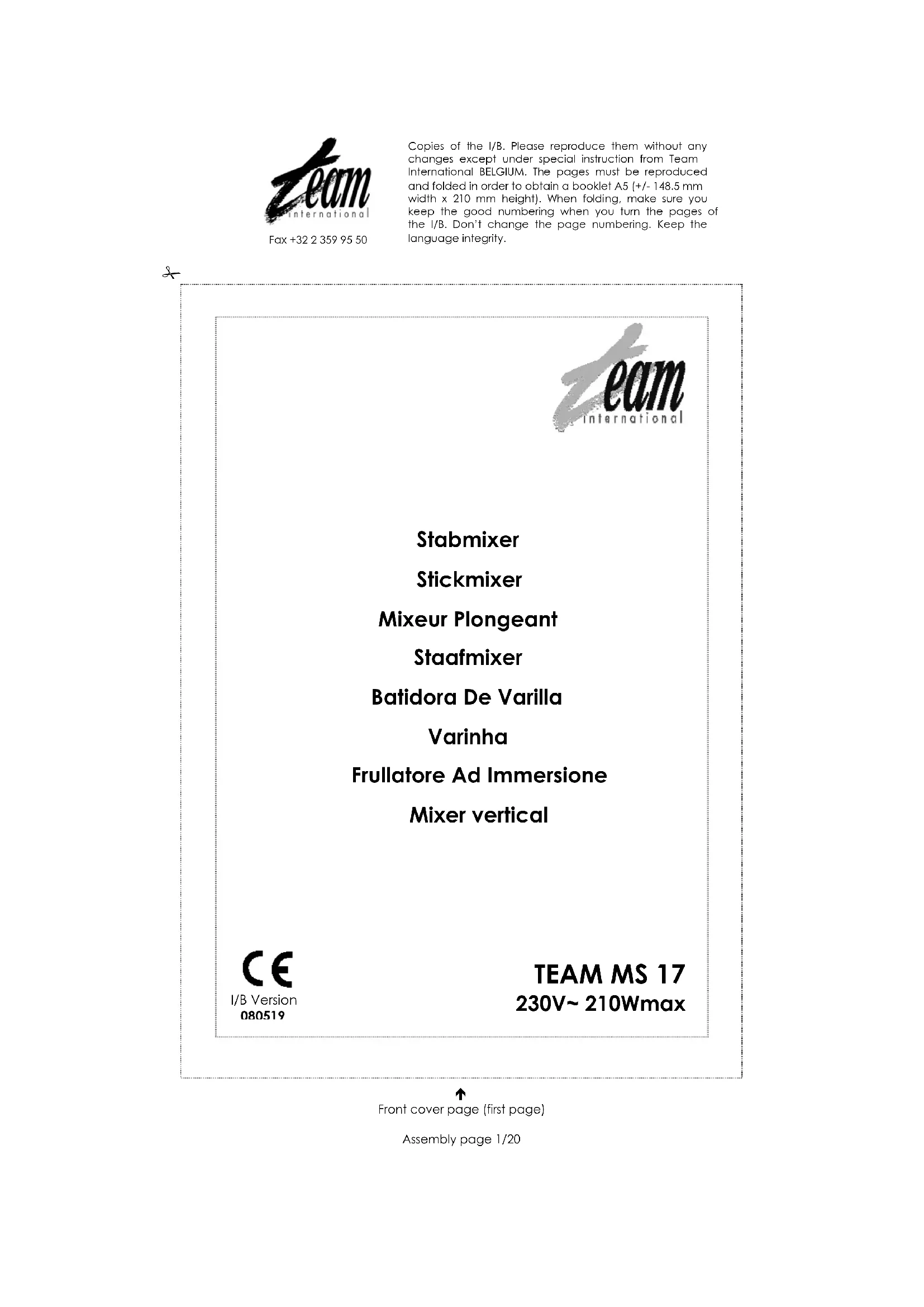 Retrouvez gratuitement la notice de l'appareil MS 17 TEAM au format PDF.