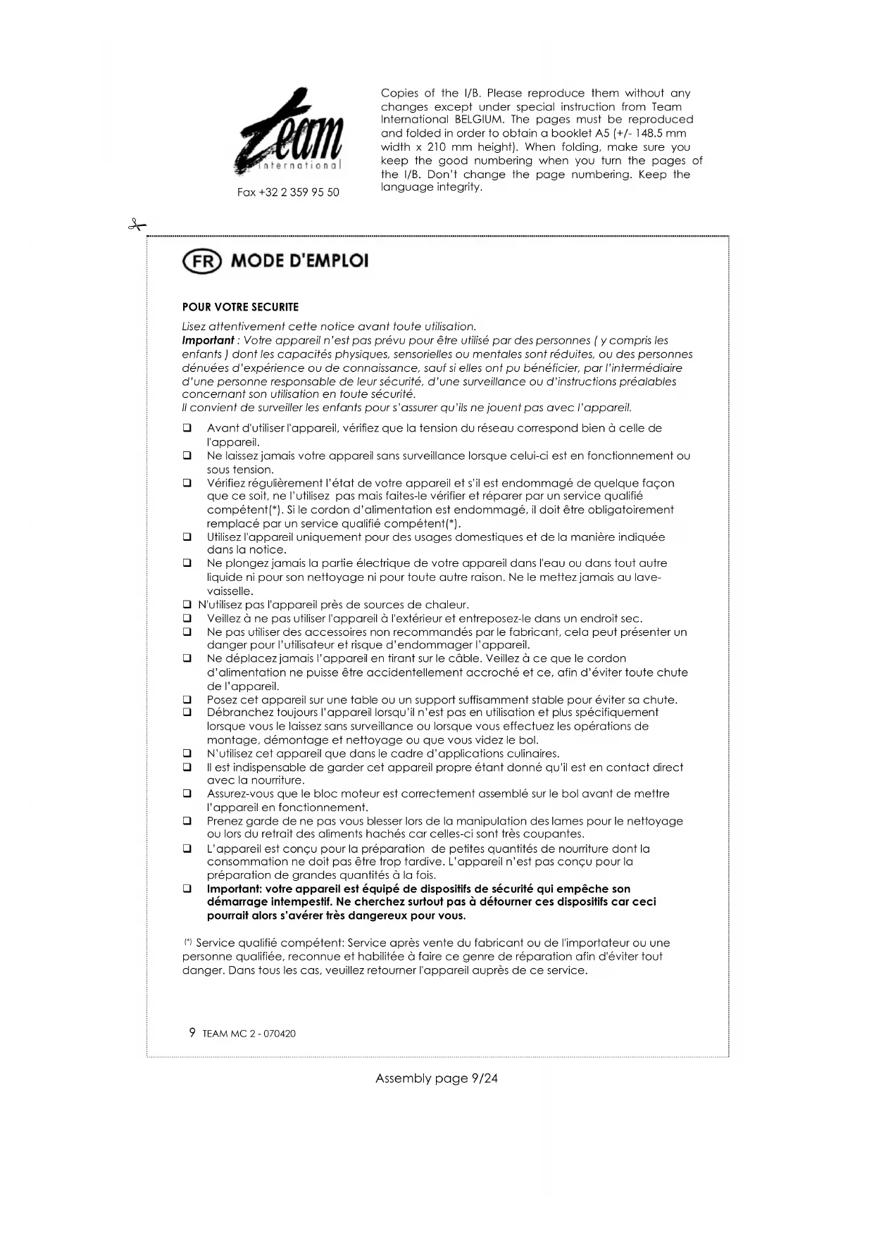 Retrouvez gratuitement la notice de l'appareil MC 2 TEAM au format PDF.