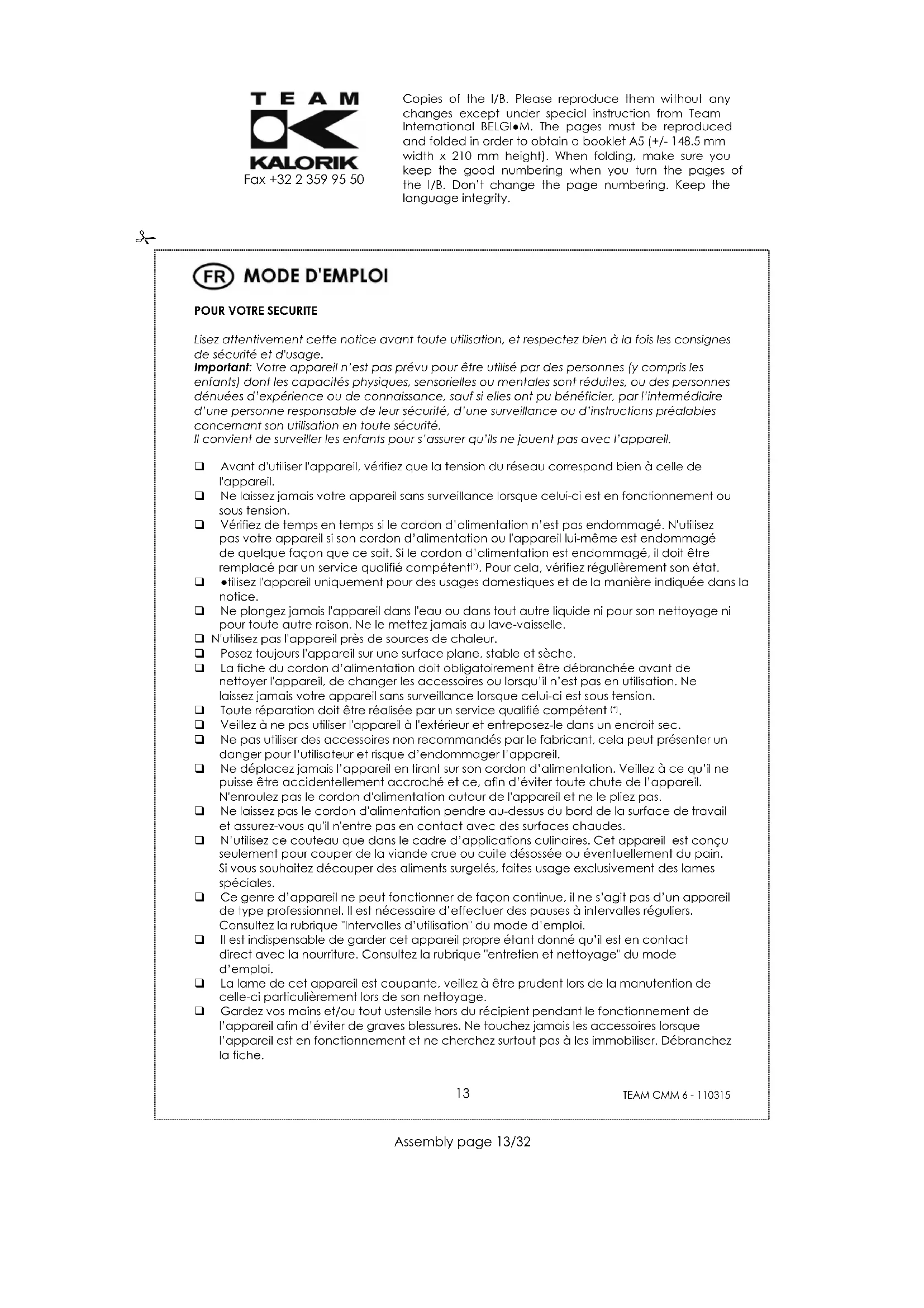 MODE D'EMPLOI CMM 6 TEAM