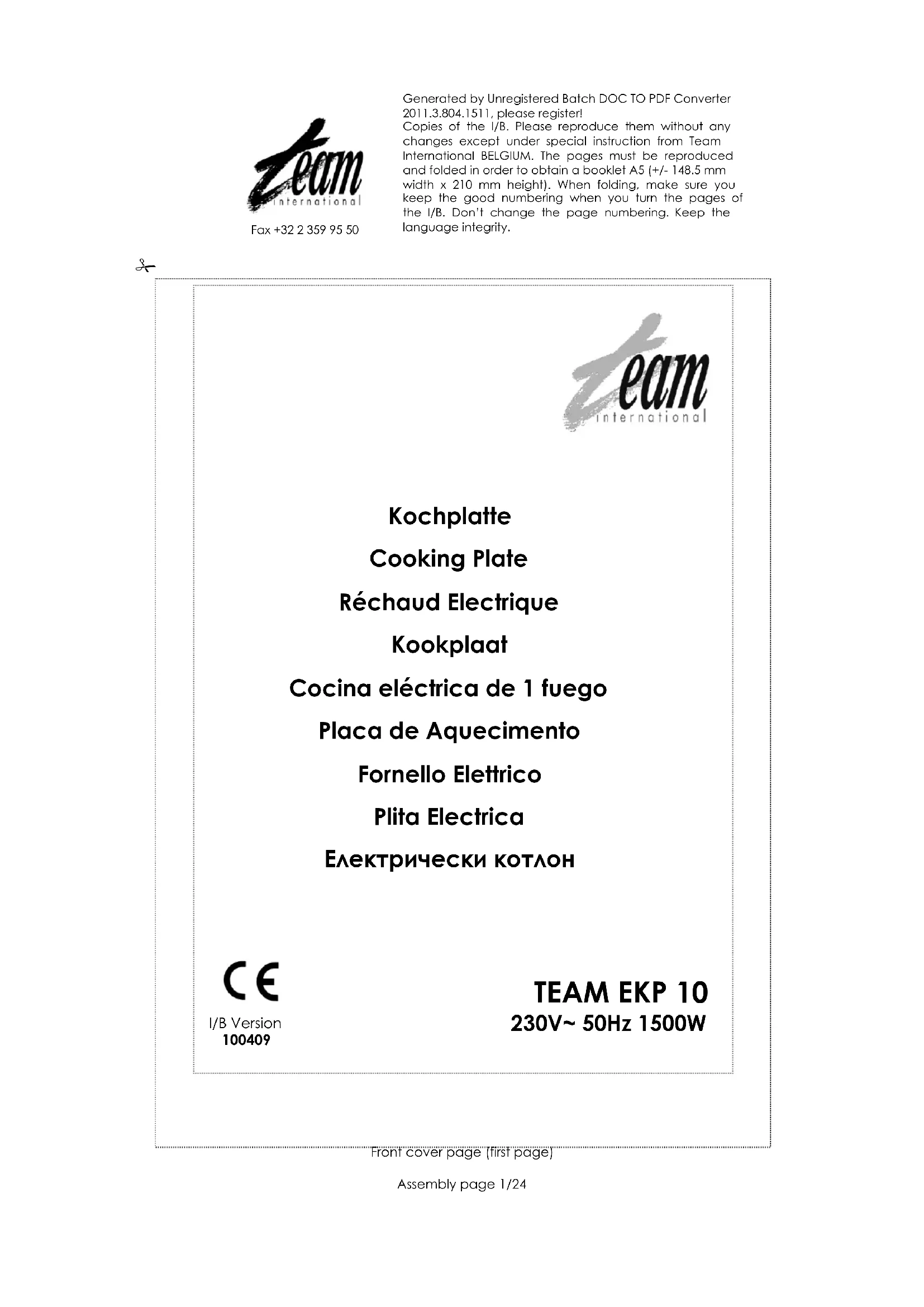 Retrouvez gratuitement la notice de l'appareil EKP 10 TEAM au format PDF.