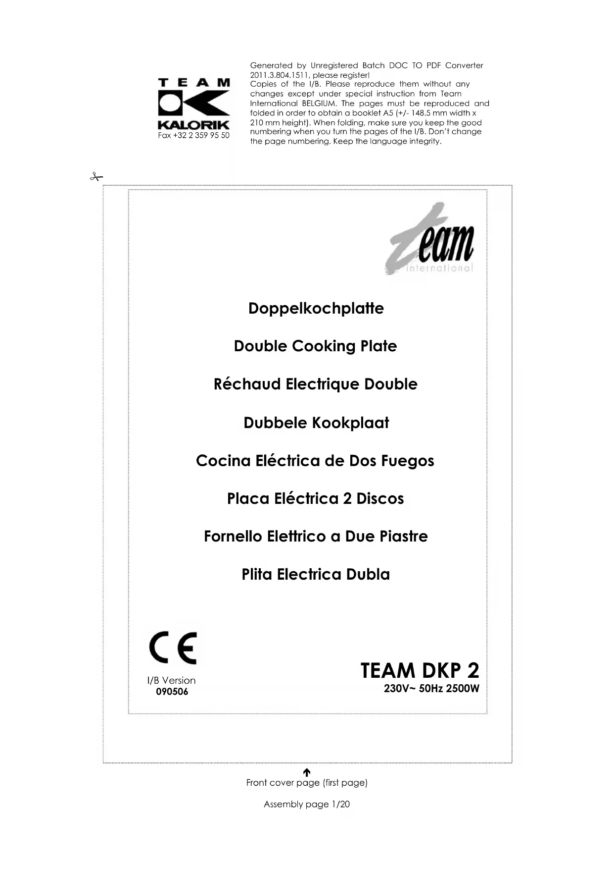 Retrouvez gratuitement la notice de l'appareil DKP 2 TEAM au format PDF.