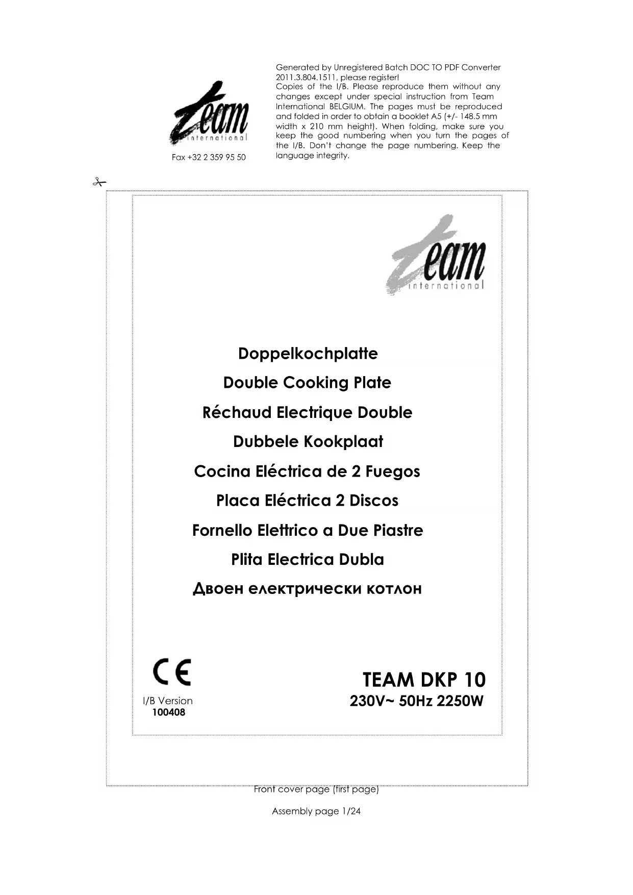 Retrouvez gratuitement la notice de l'appareil DKP 10 TEAM au format PDF.