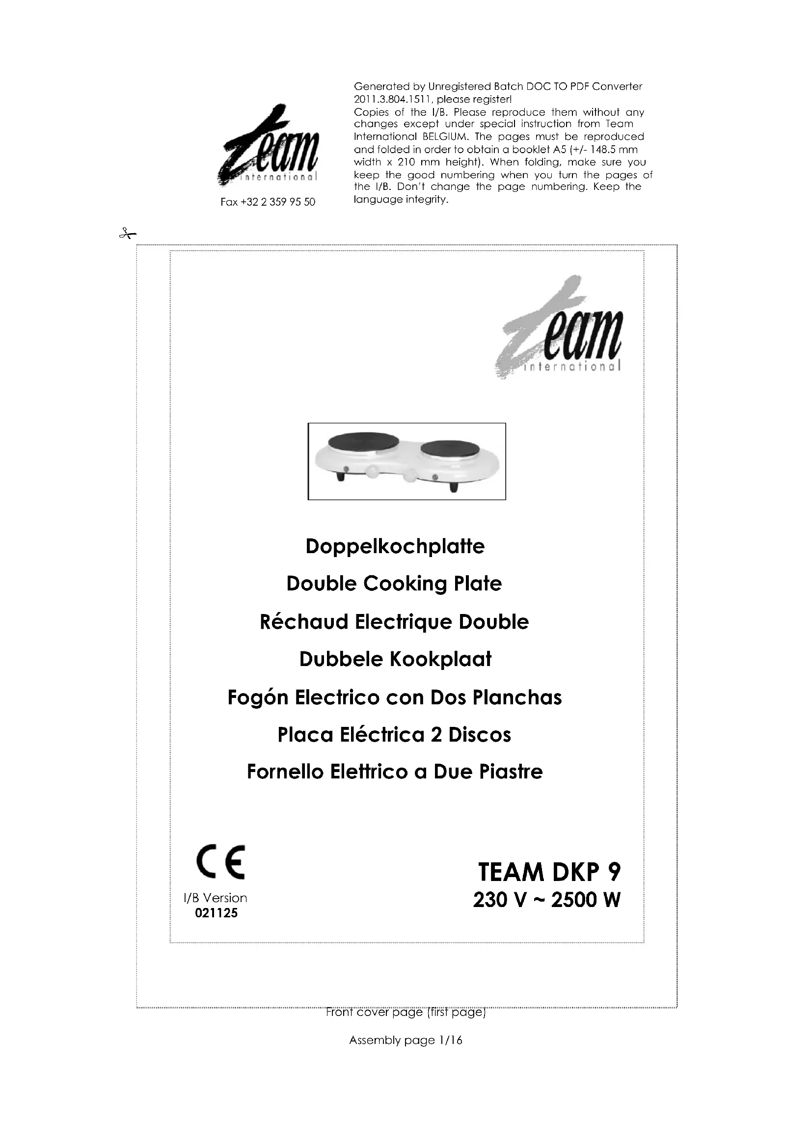 Retrouvez gratuitement la notice de l'appareil DKP 9 TEAM au format PDF.