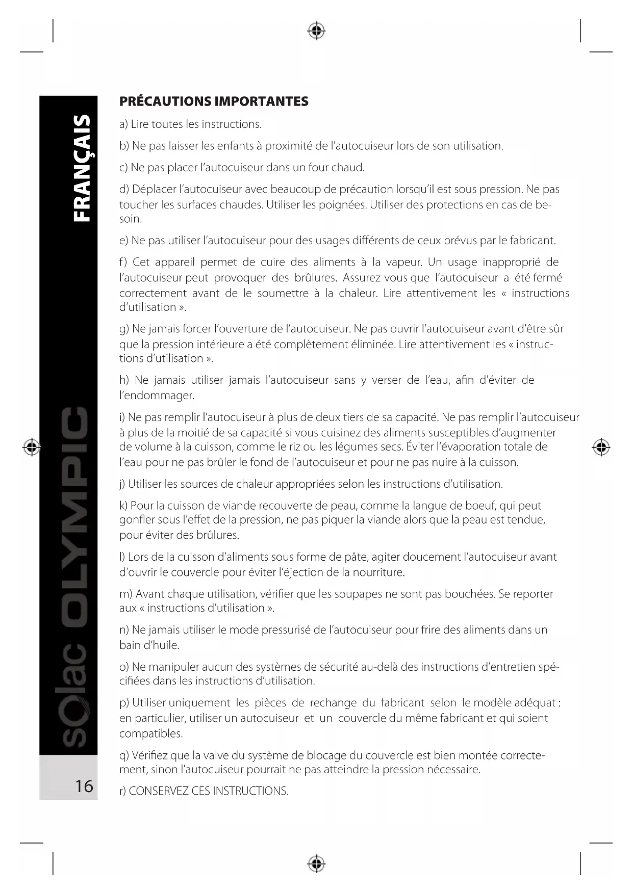 MODE D'EMPLOI Olympic OR0990 SOLAC