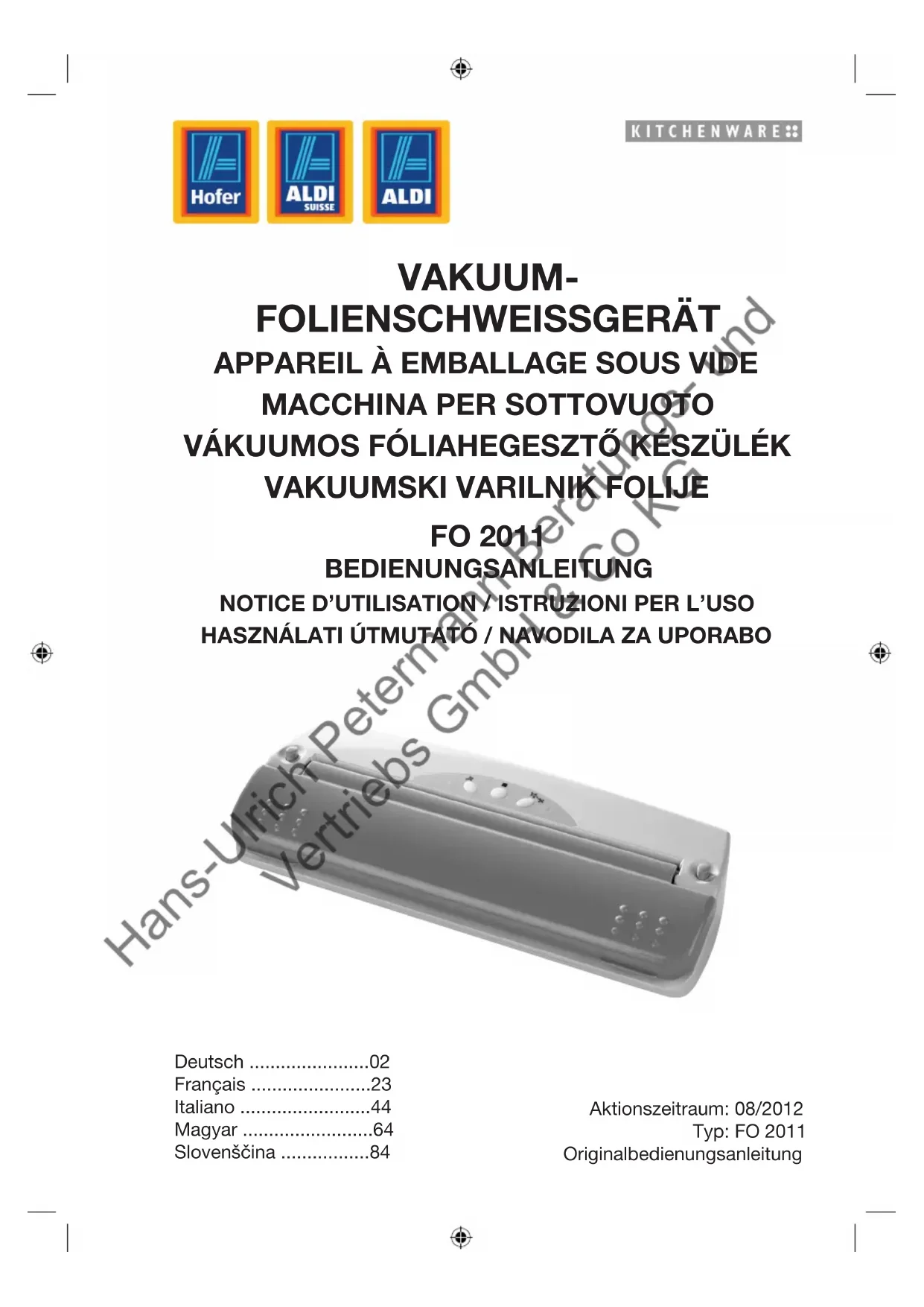 FO 2011 - Appareils à emballage sous vide Kitchenware - Notice d'utilisation et mode d'emploi gratuit