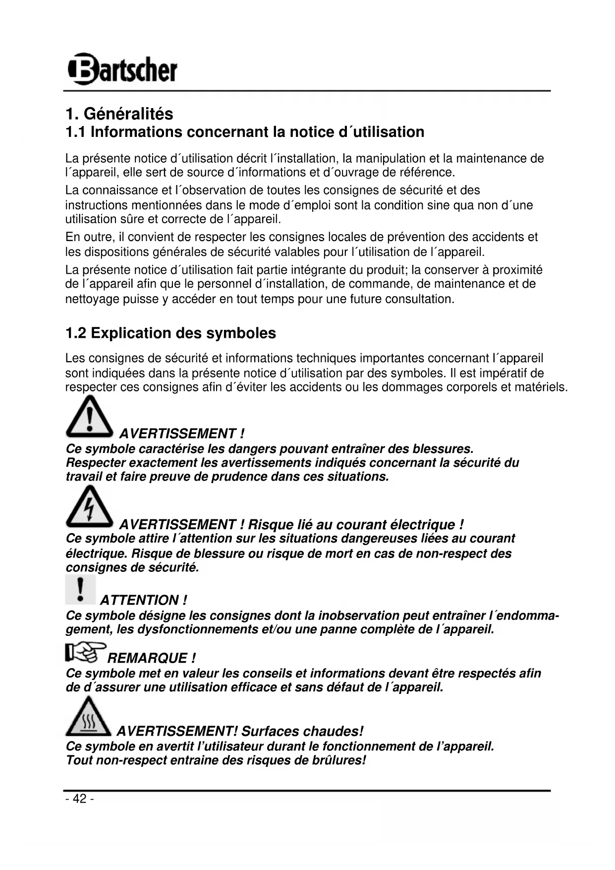 Avant d’utiliser l’appareil, lire attentivement la notice et la conserver en un lieu facilement accessible ! 1. Généralités ............................................................................................................... 42