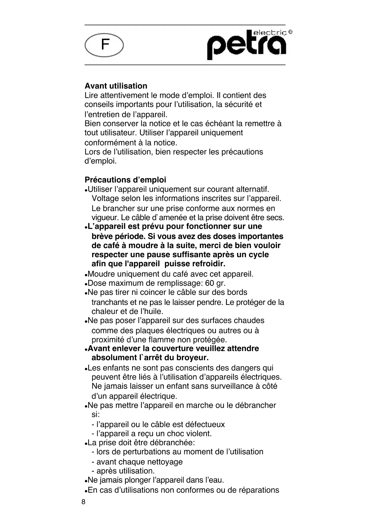 M 85 - Moulin à café Petra Electric - Notice d'utilisation et mode d'emploi gratuit