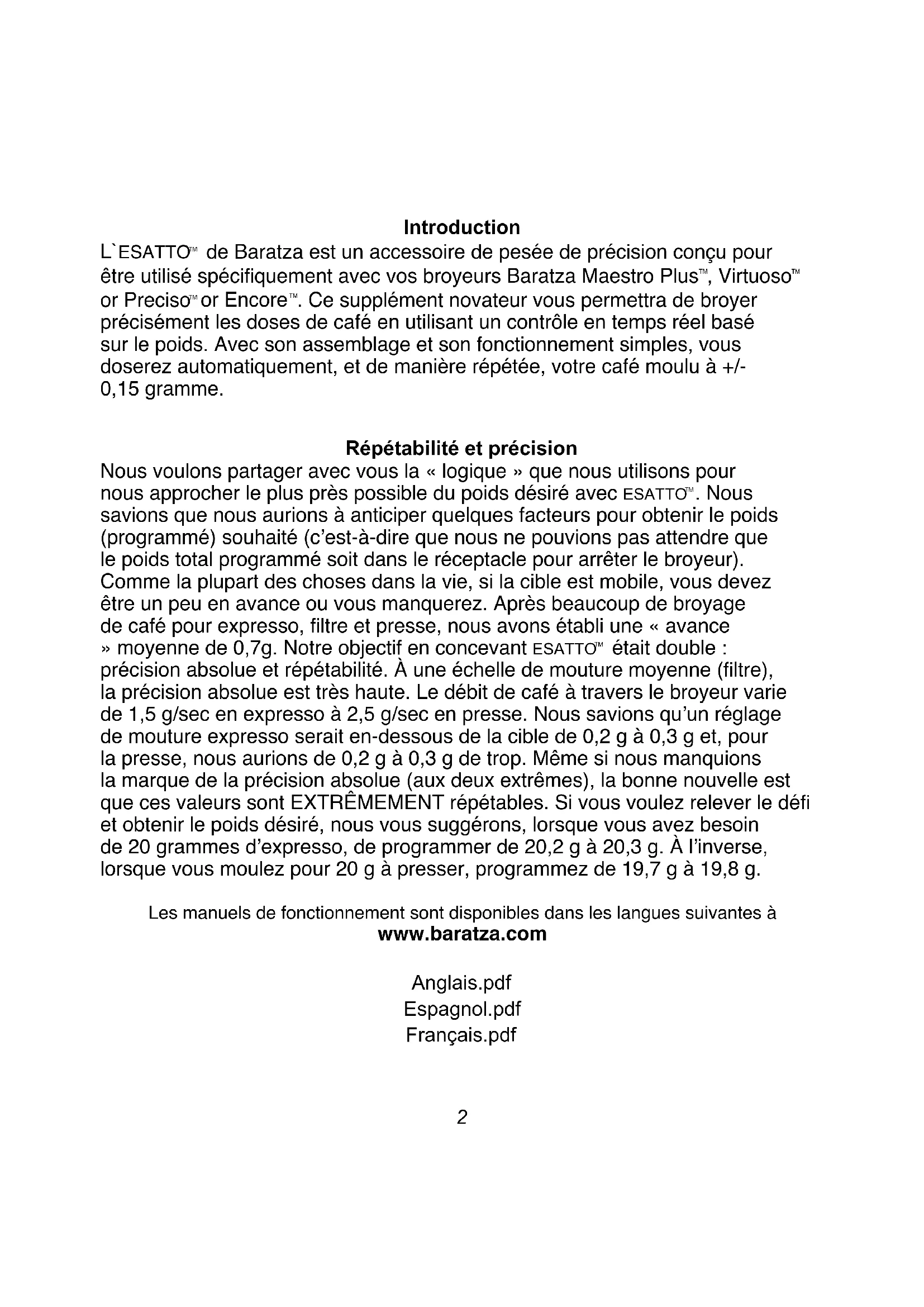 Retrouvez gratuitement la notice de l'appareil ESATTO Baratza au format PDF.