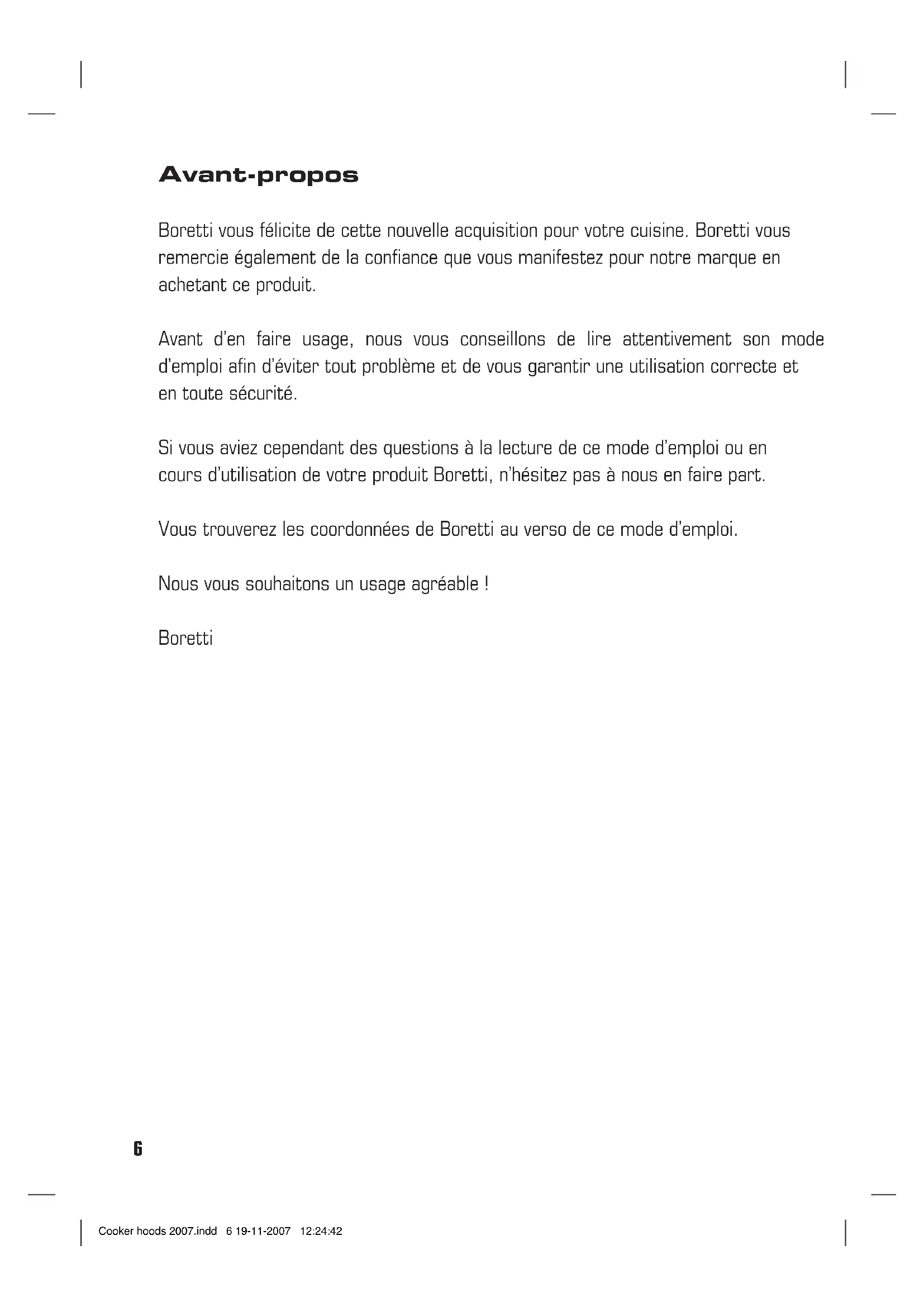 K 960 - Hotte BORETTI - Notice d'utilisation et mode d'emploi gratuit
