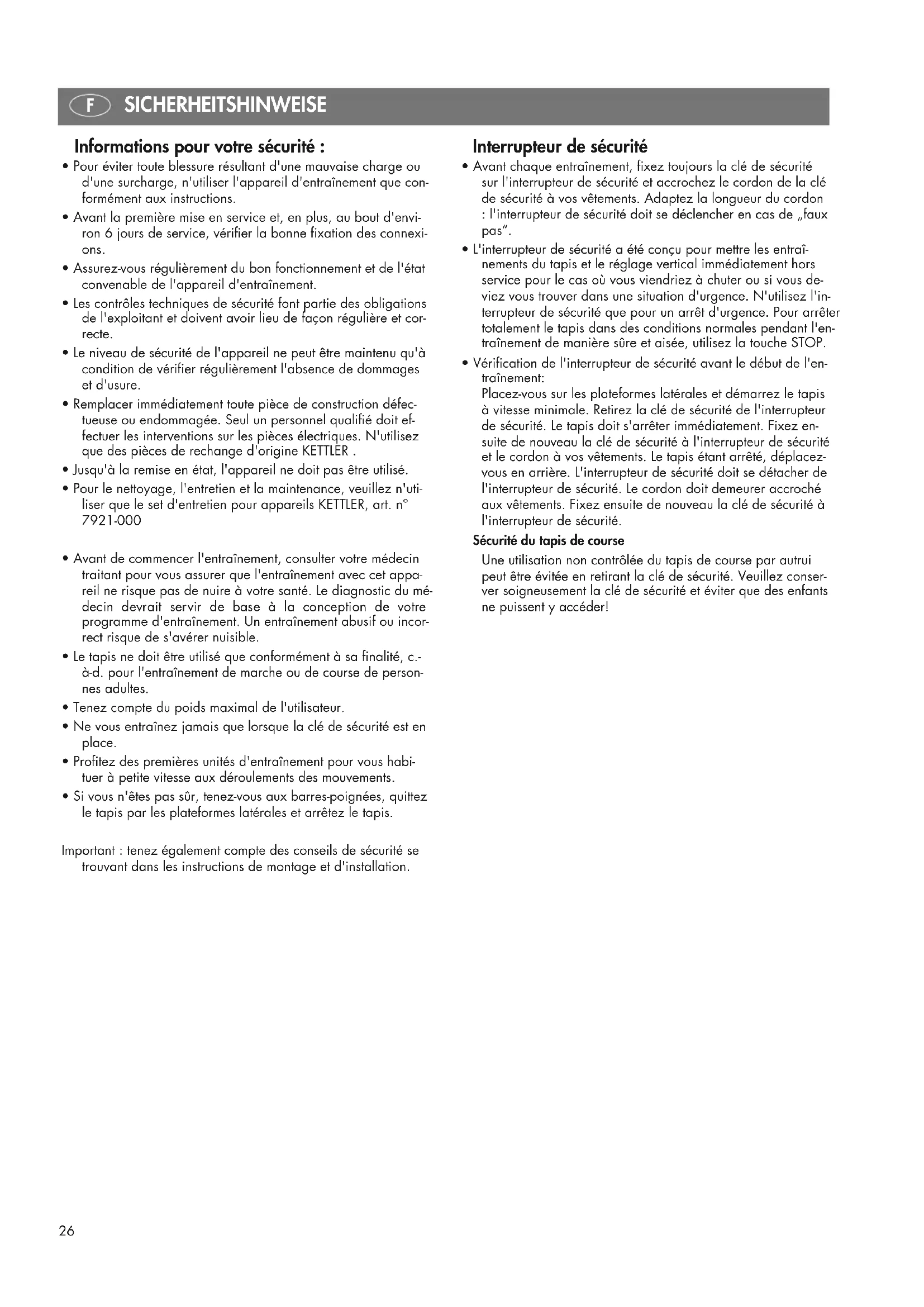 - Pour le nettoyage, l'entretien et la maintenance, veuillez n'uti- liser que le set d'entretien pour appareils KETTLER, art. n° 7921-000
