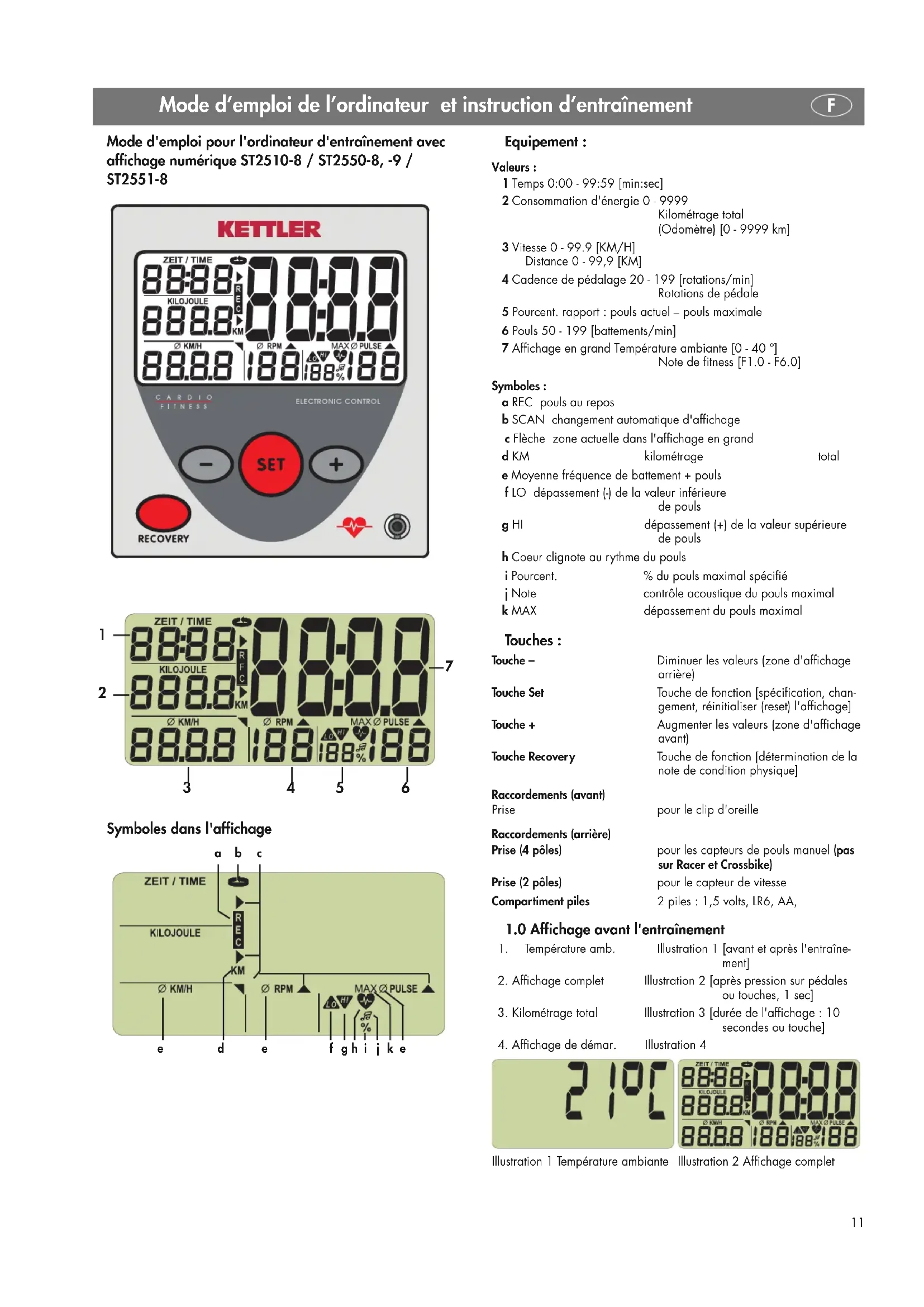 Illustration 1 Température ambiante Illustration 2 Affichage complet Mode d'emploi pour l'ordinateur d'entraînement avec affichage numérique ST2510-8 / ST2550-8, -9 / ST2551-8 Symboles dans l'affichage