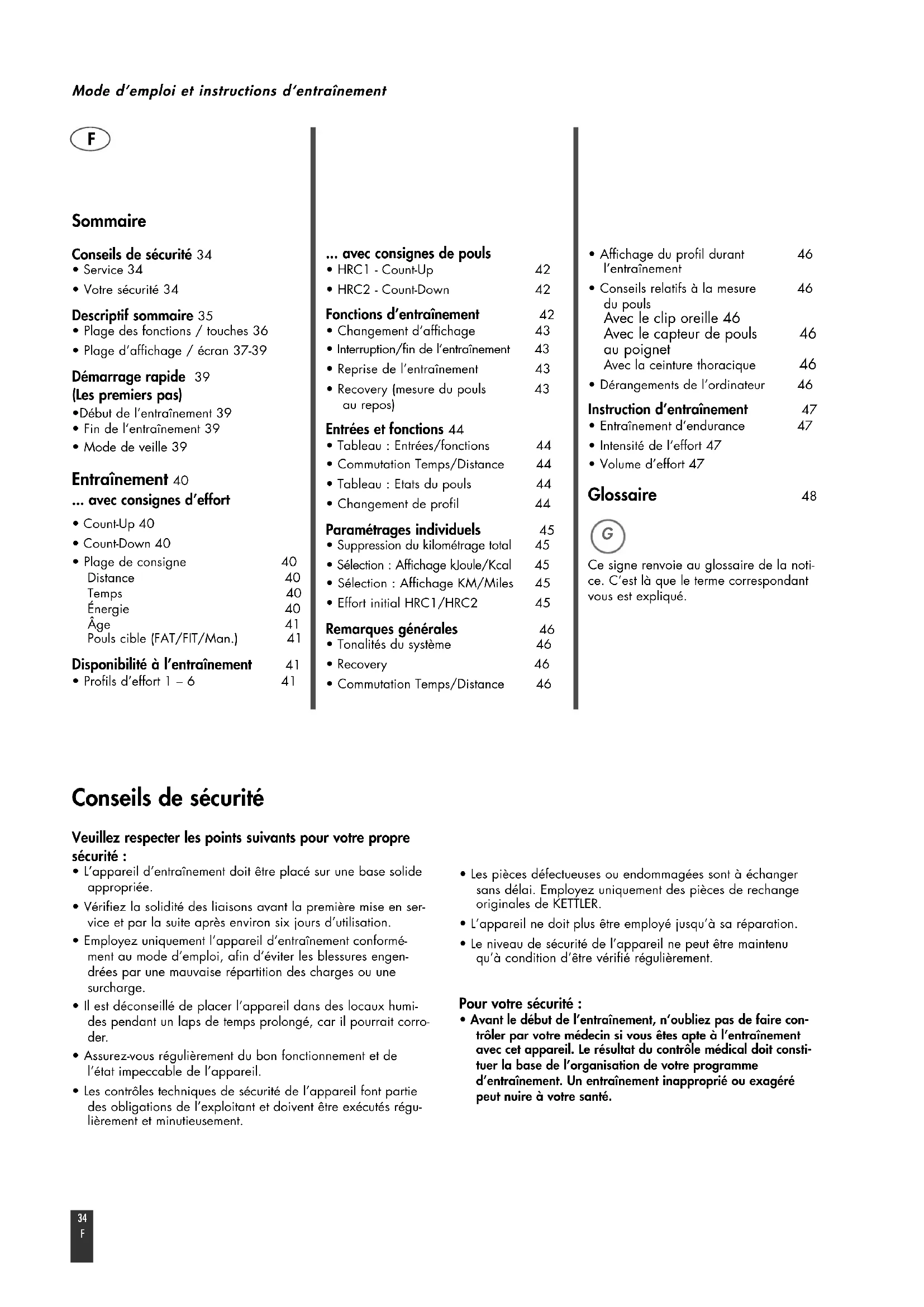- Entraînement d’endurance 47• Intensité de l’effort 47• Volume d’effort 47 Glossaire 48 Ce signe renvoie au glossaire de la noti-ce. C’est là que le terme correspondantvous est expliqué.