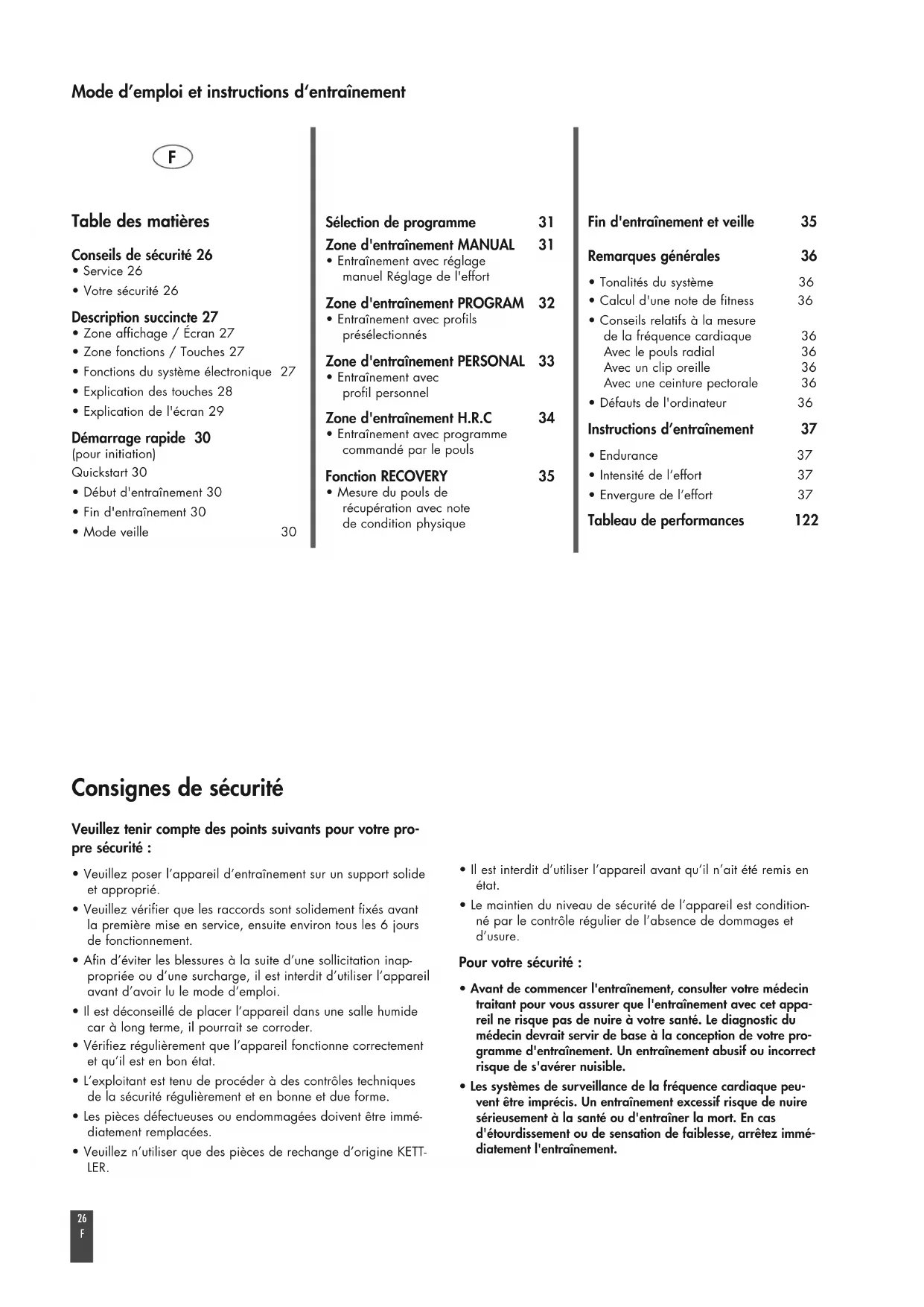 - Défauts de l'ordinateur 36 Instructions d’entraînement 37