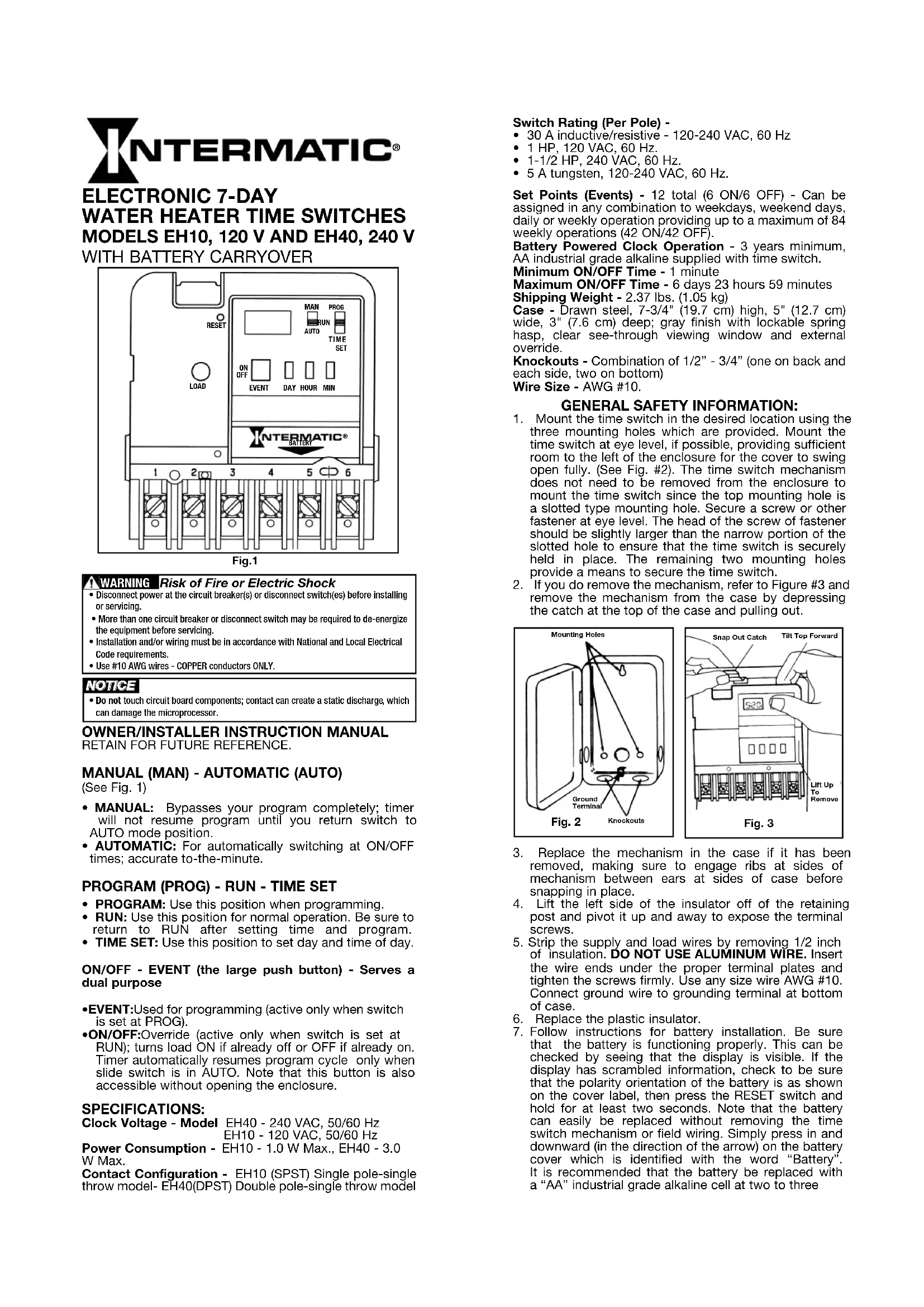 EH40 - Commutateur INTERMATIC - Notice d'utilisation et mode d'emploi gratuit