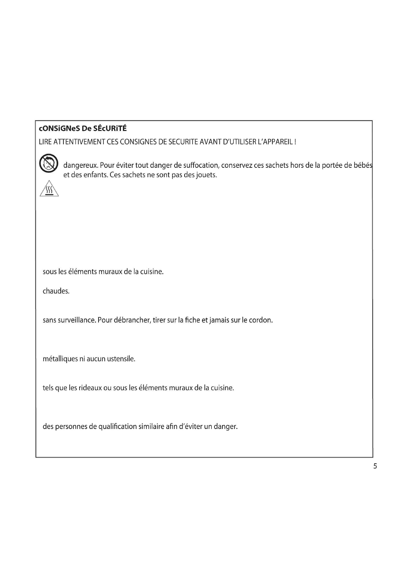 - Ne jamais placer des pains ou des viennoiseries fourrés ou glacés recouverts de beurre, car cela pourrait provoquer un incendie.