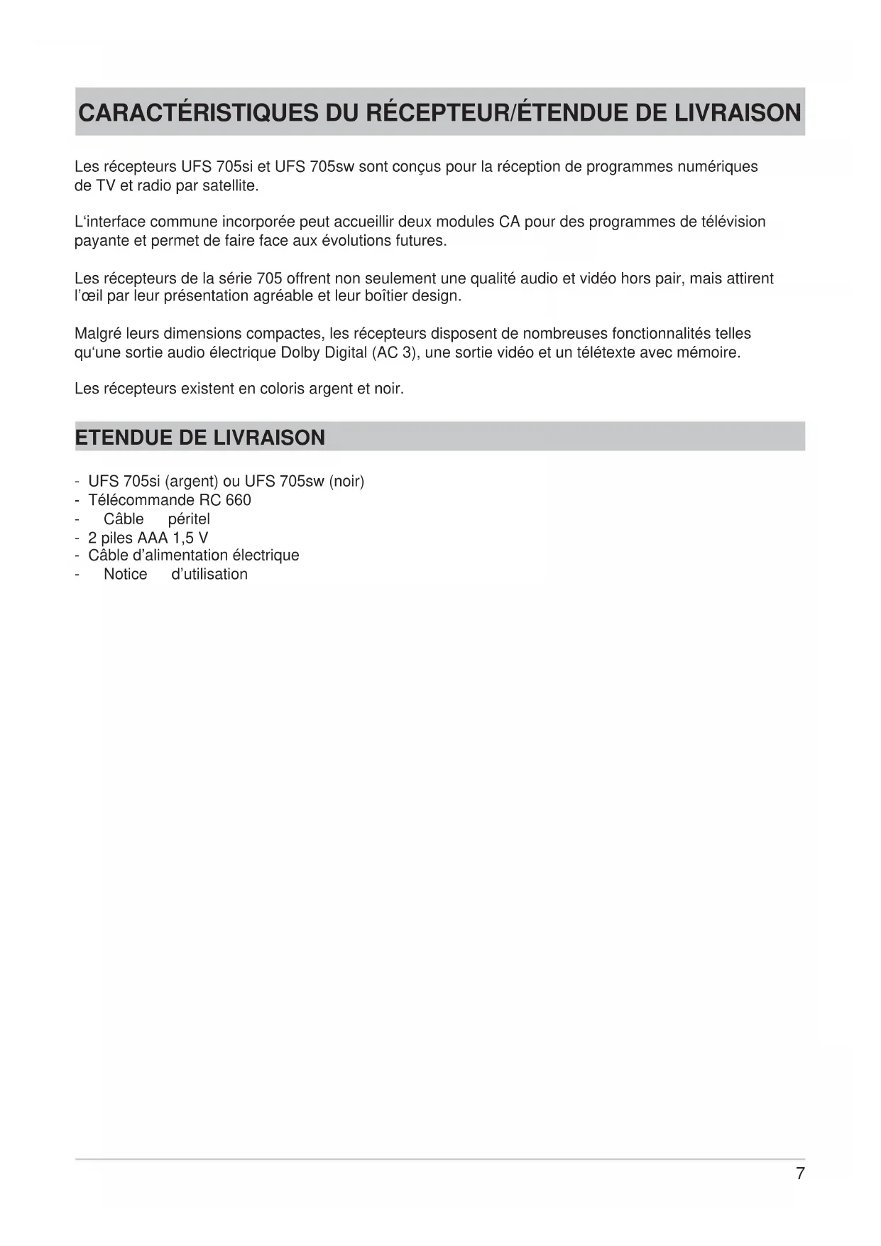 CARACTÉRISTIQUES DU RÉCEPTEUR/ÉTENDUE DE LIVRAISON 7