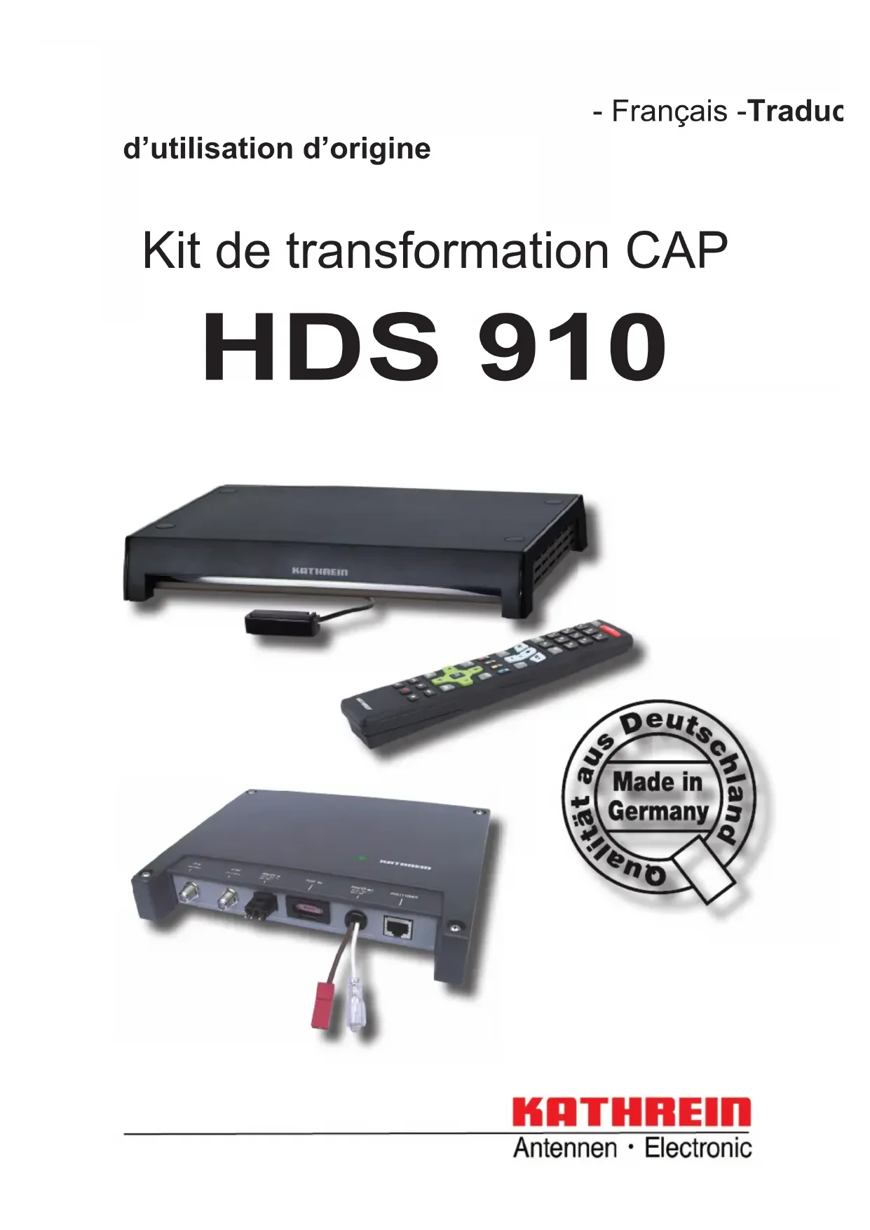 Retrouvez gratuitement la notice de l'appareil CAPombouwset HH KATHREIN au format PDF.