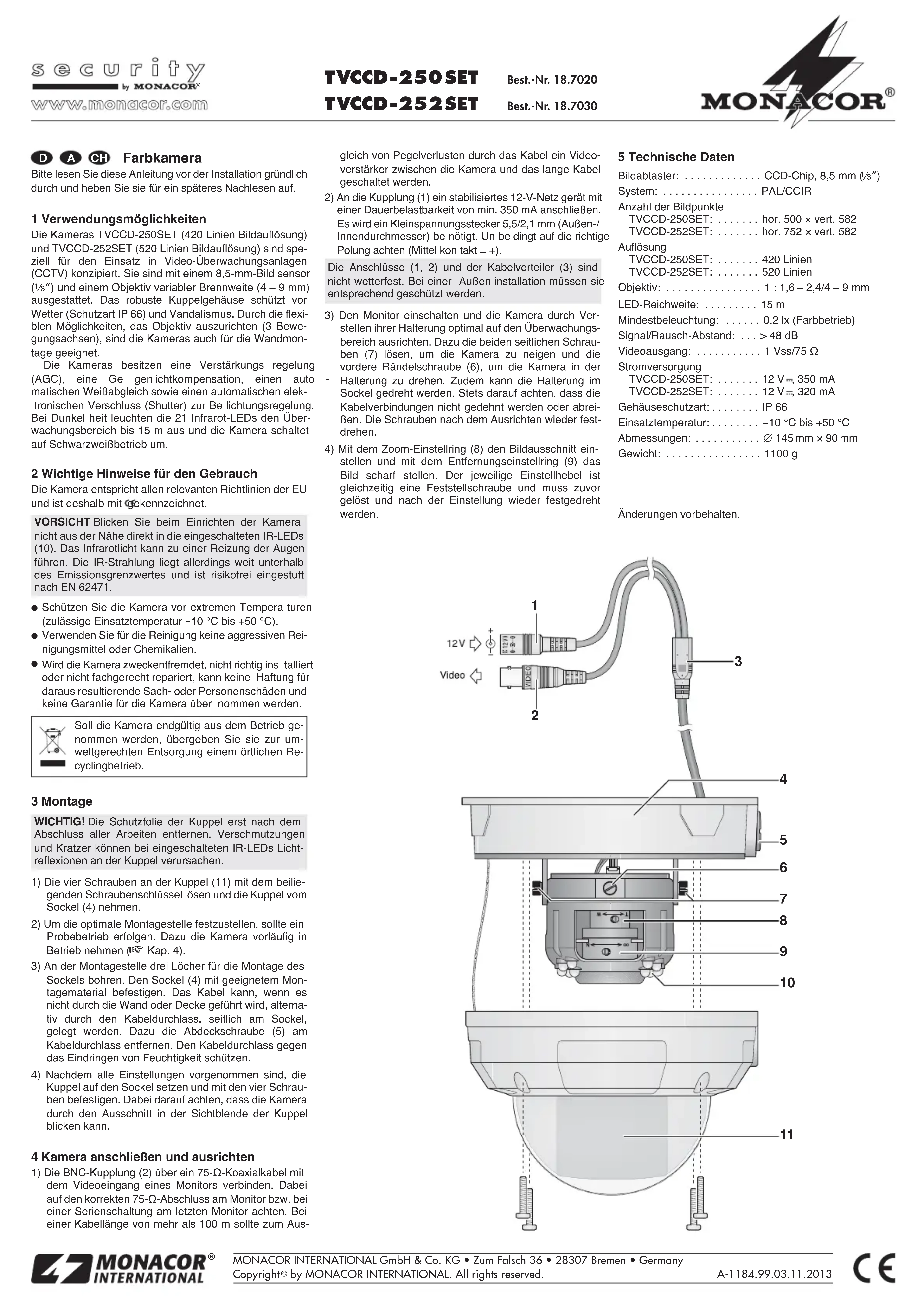 TVCCD250SET - Caméra de surveillance Monacor - Notice d'utilisation et mode d'emploi gratuit