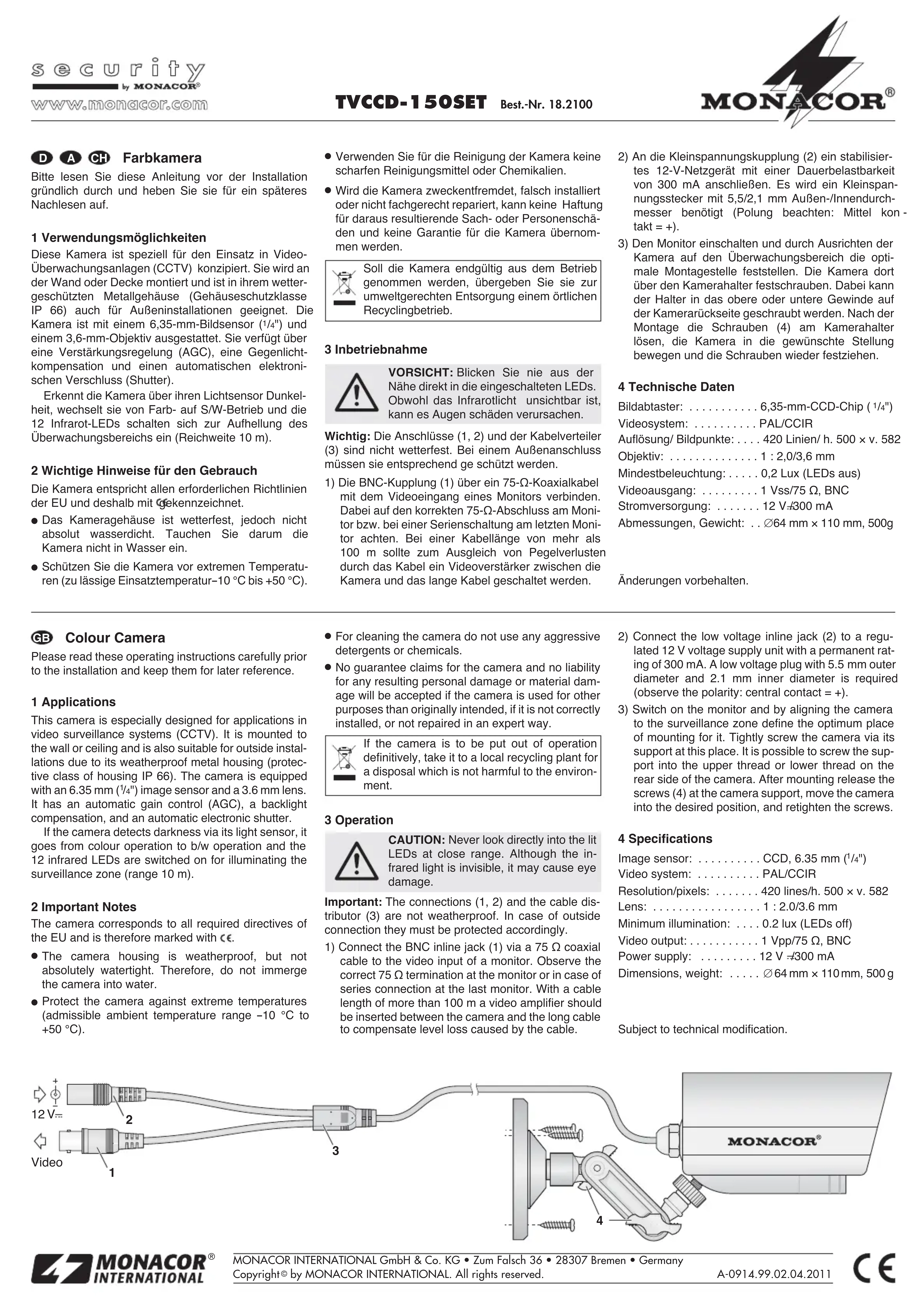 TVCCD150SET - Caméra de surveillance Monacor - Notice d'utilisation et mode d'emploi gratuit