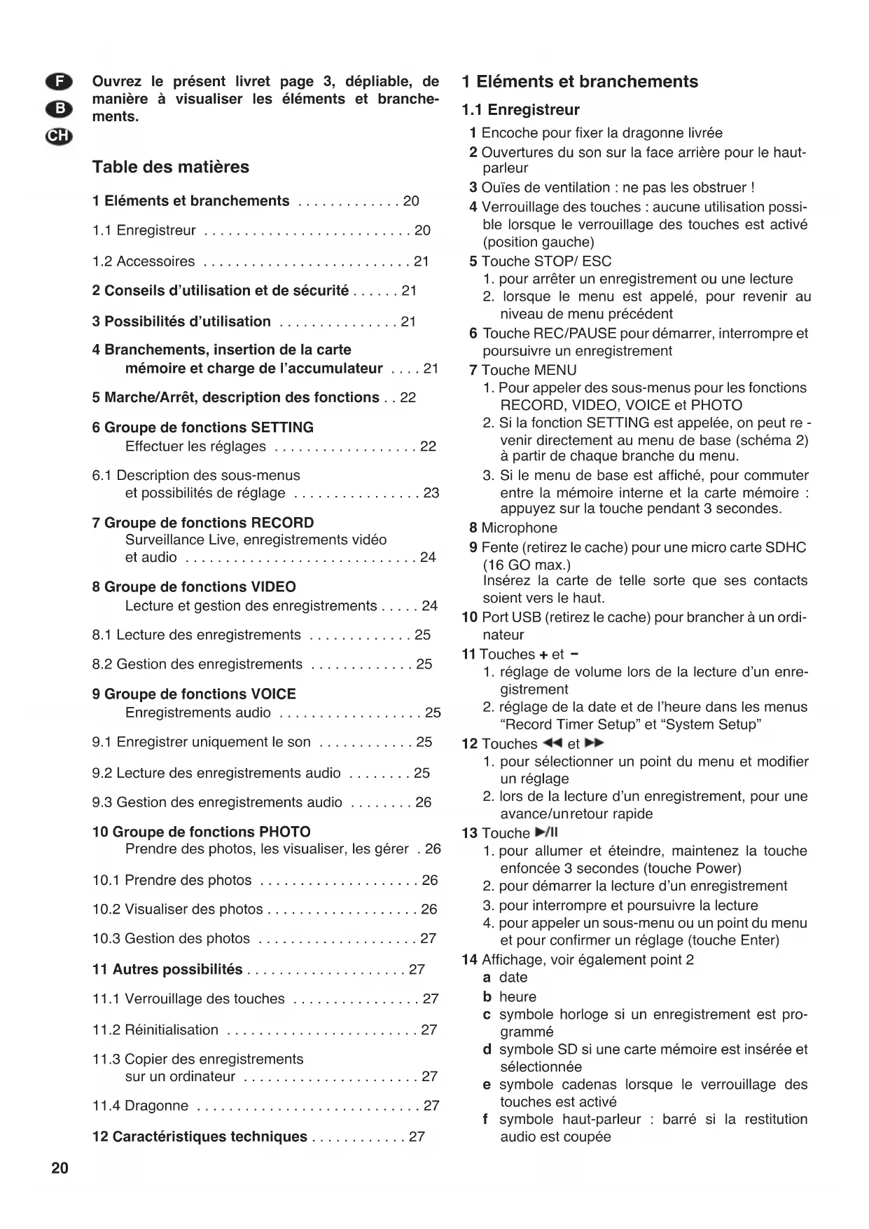 7 Groupe de fonctions RECORD Surveillance Live, enregistrements video et audio 24
