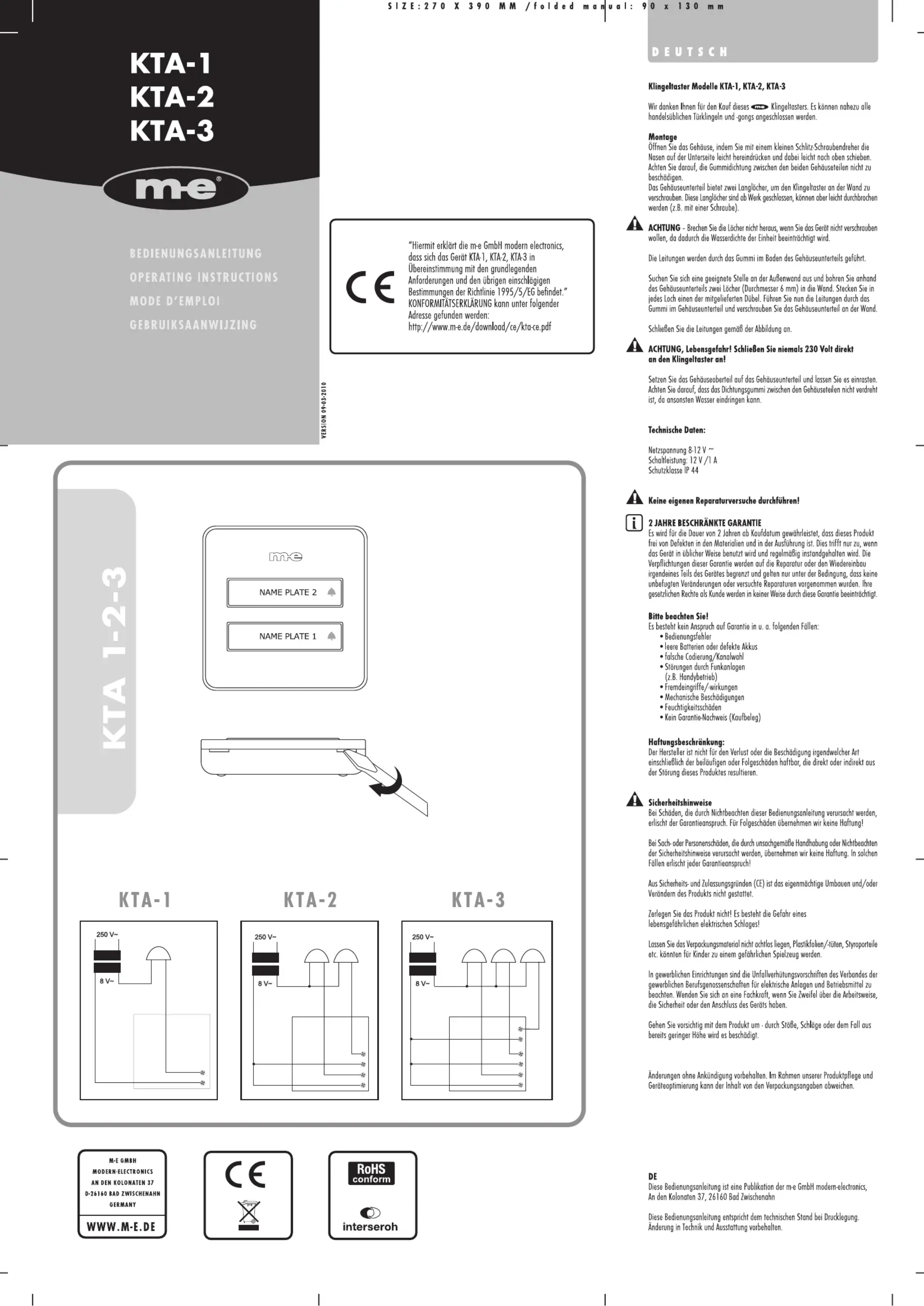 KTA1 - Sonnette de portes ME - Notice d'utilisation et mode d'emploi gratuit