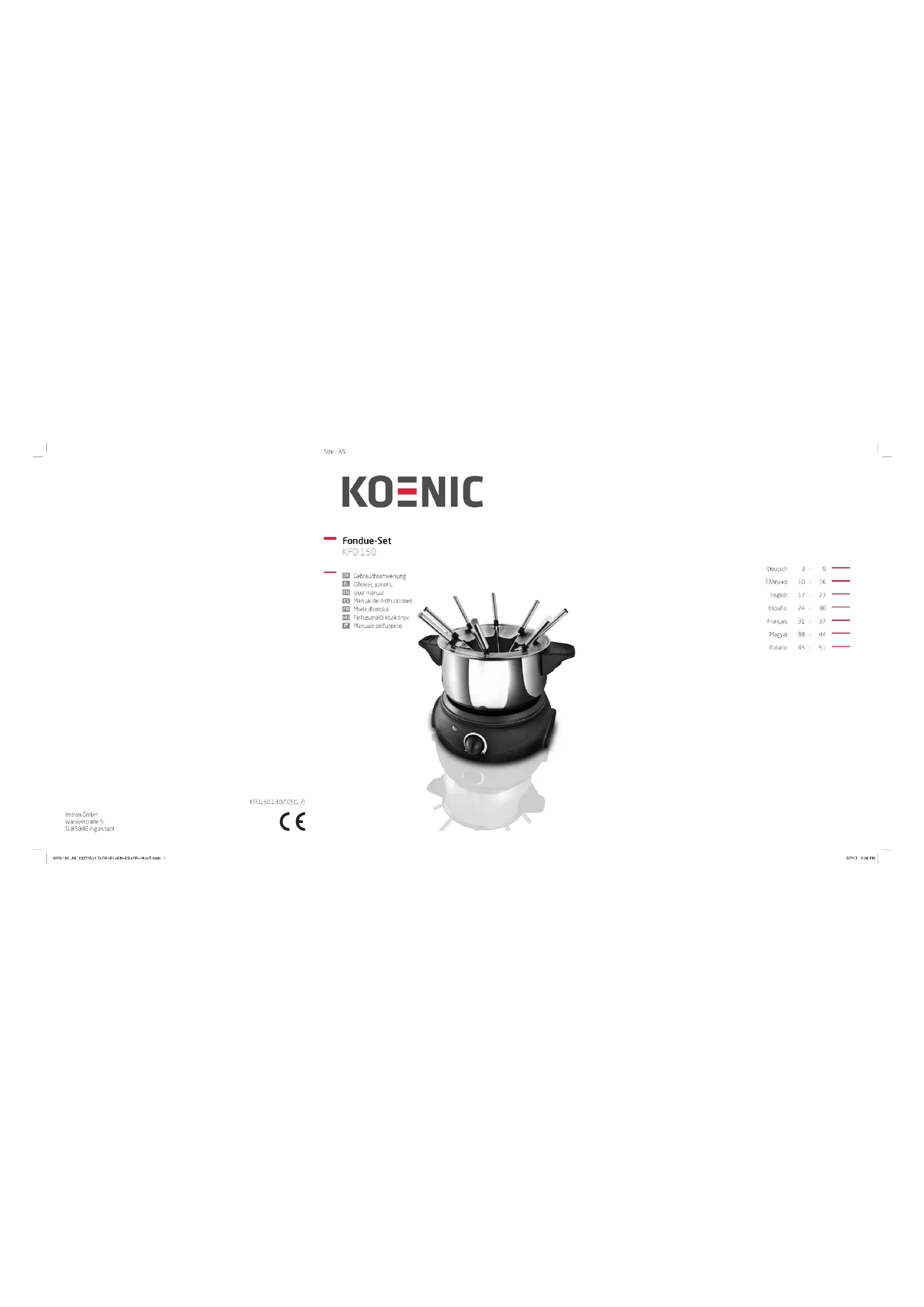KFO 150 - Appareil à fondue, raclette et wok Koenic - Notice d'utilisation et mode d'emploi gratuit
