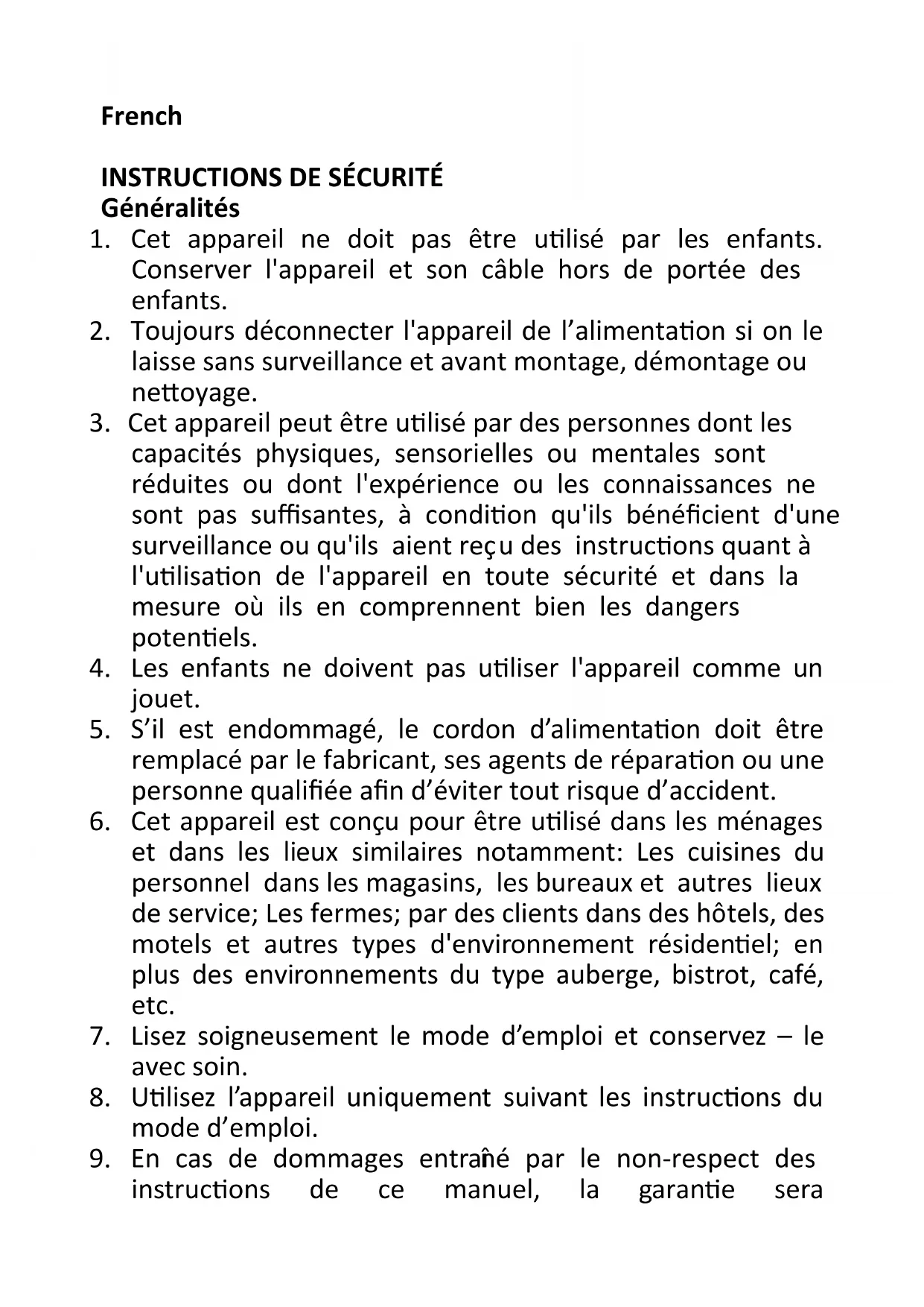 8. Utilisez l’appareil uniquement suivant les instructions du