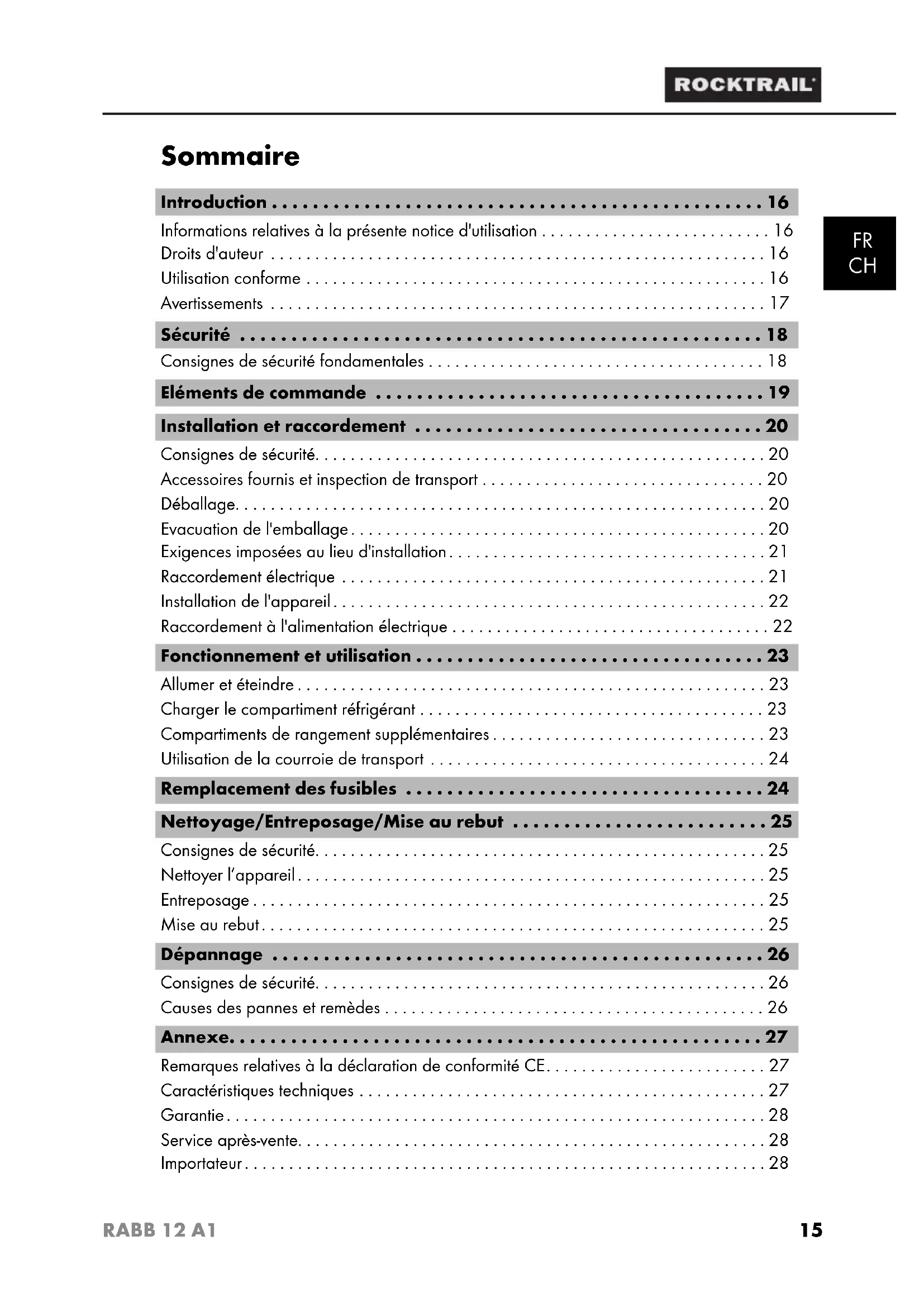 RABB 12 A1 - Frigo Rocktrail - Notice d'utilisation et mode d'emploi gratuit