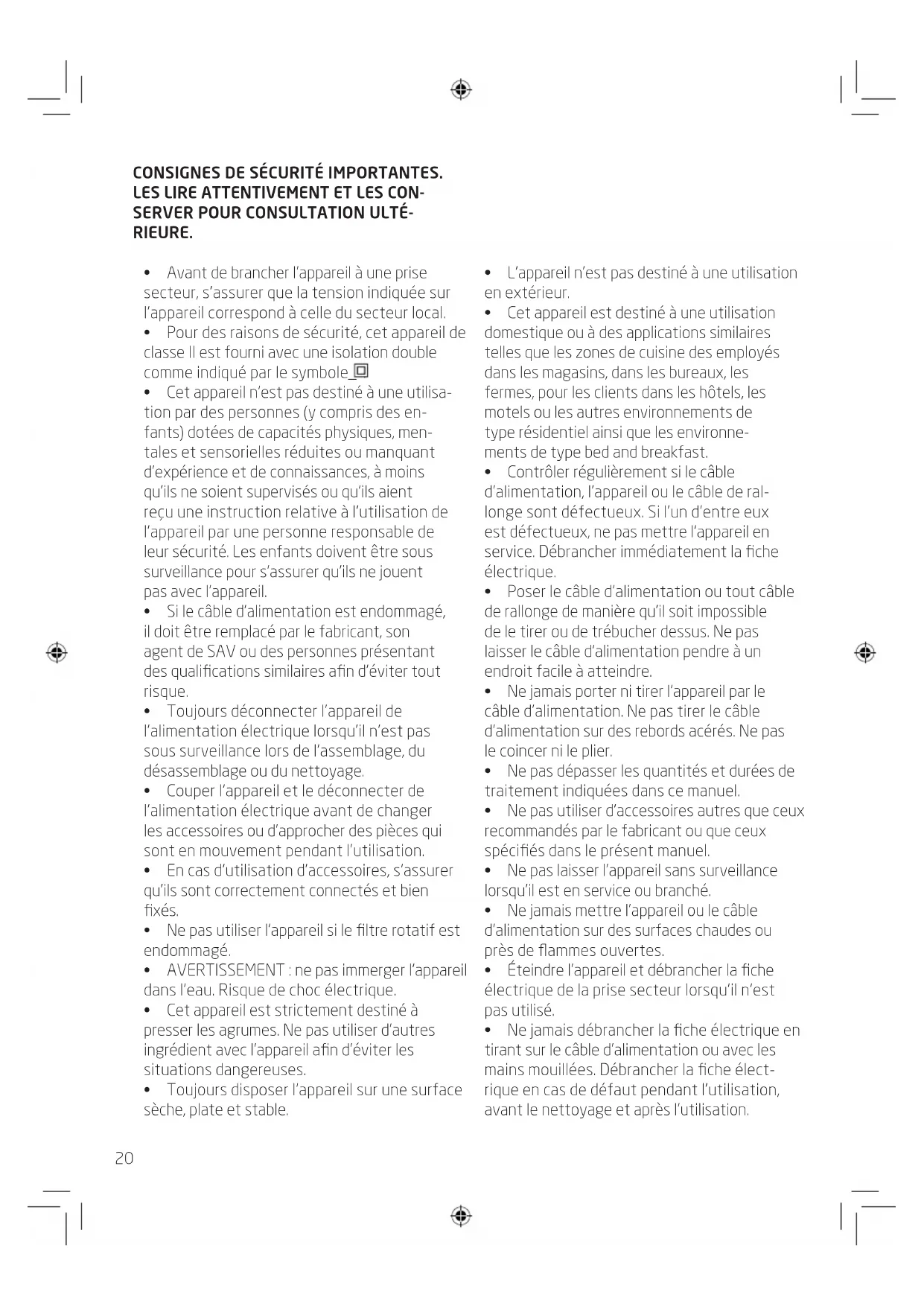 - Cet appareil est strictement destiné à presser les agrumes. Ne pas utiliser d’autres ingrédient avec l’appareil afin d’éviter les situations dangereuses.