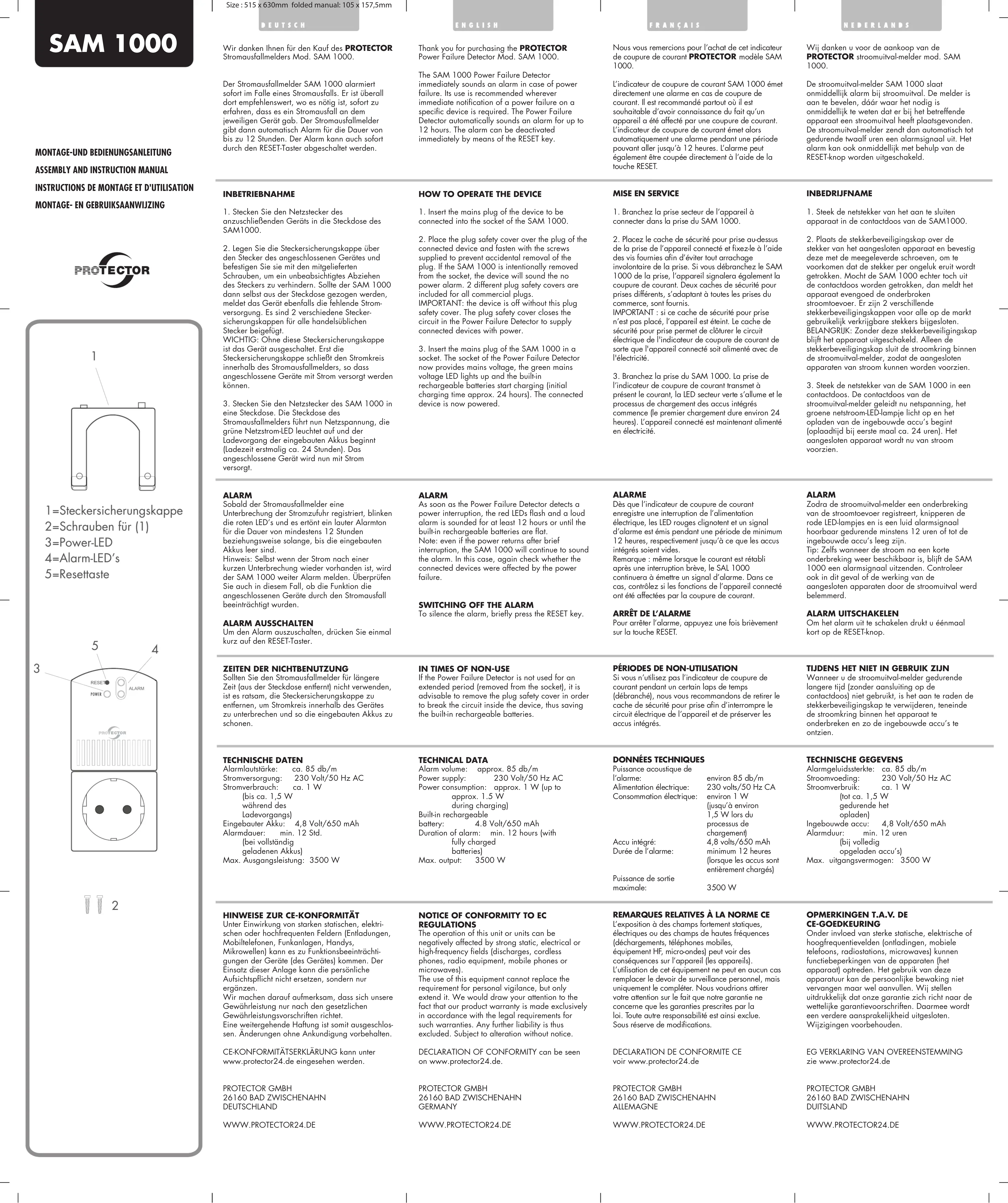 DECLARATION DE CONFORMITE CE voir www.protector24.de