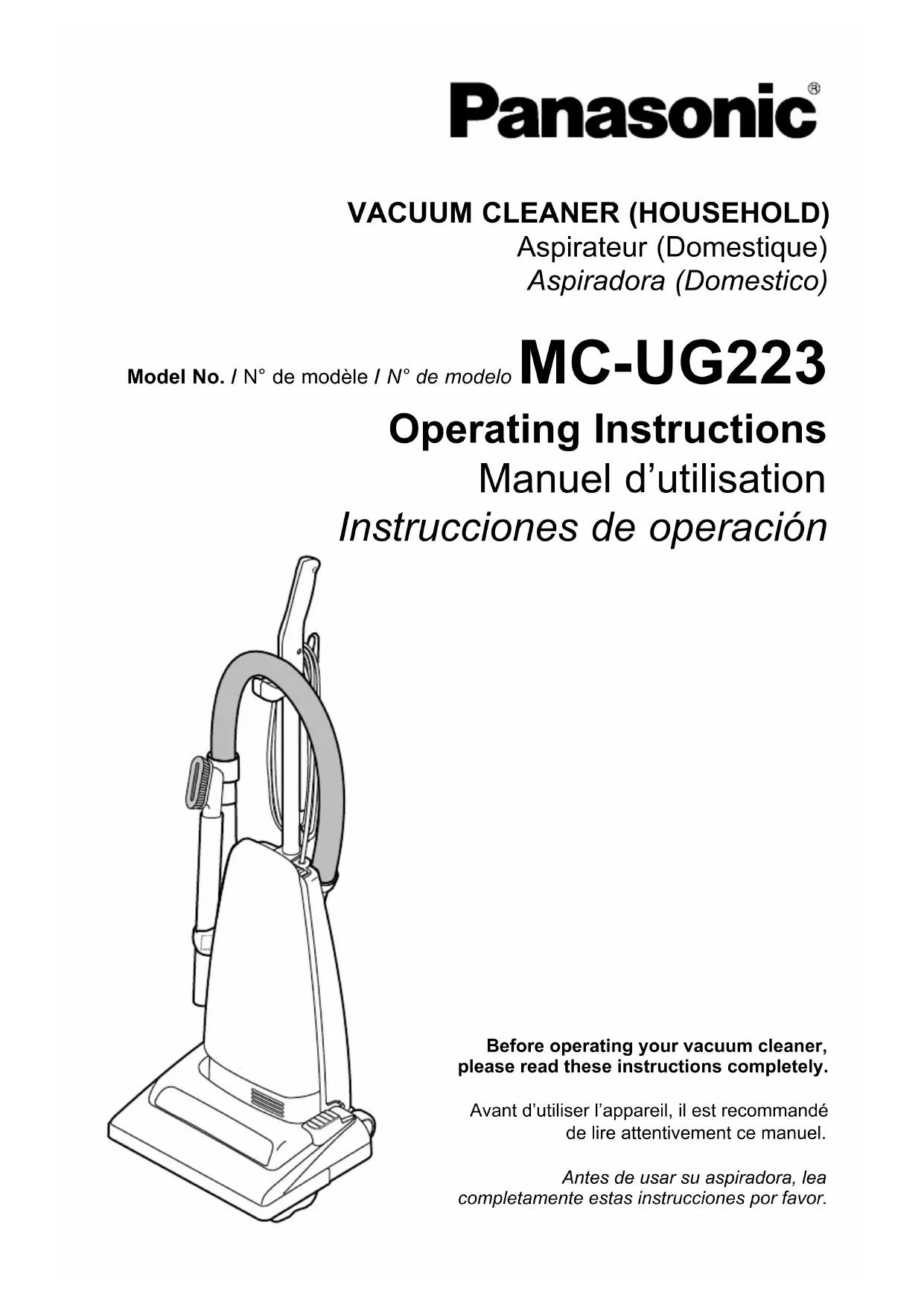 MCUG223 - Aspirateur PANASONIC - Notice d'utilisation et mode d'emploi gratuit