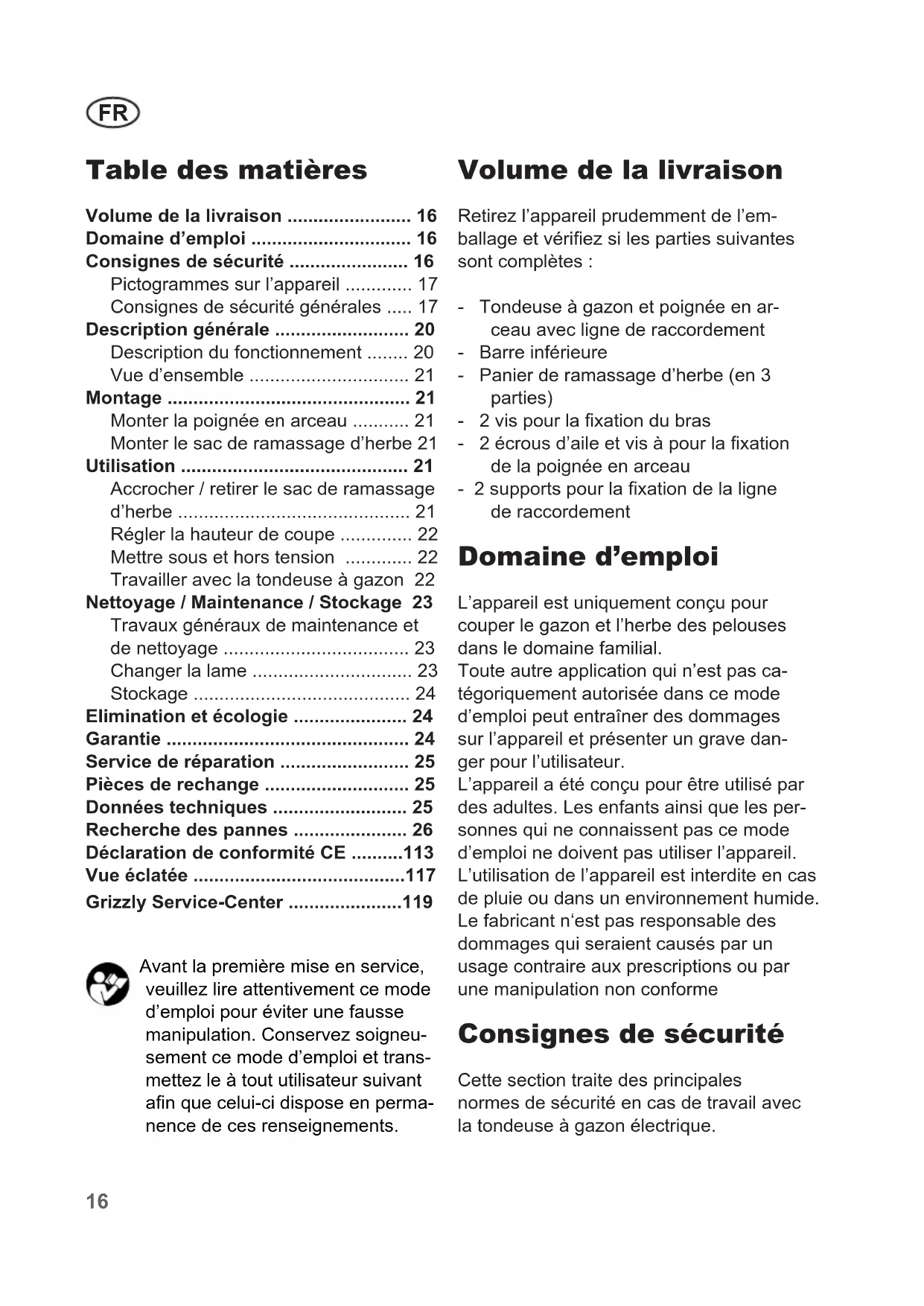 MODE D'EMPLOI ERM 1030 G Grizzly