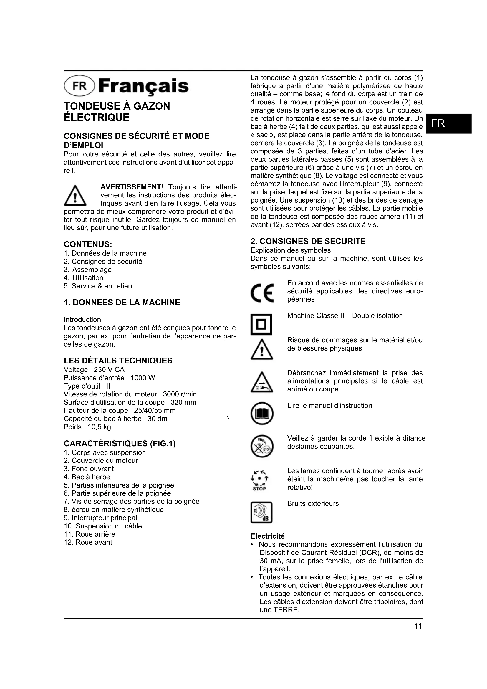 D’EMPLOI Pour votre sécurité et celle des autres, veuillez lire attentivement ces instructions avant d’utiliser cet appa- reil. AVERTISSEMENT! Toujours lire attenti- vement les instructions des produits élec- triques avant d’en faire l’usage. Cela vous permettra de mieux comprendre votre produit et d’évi- ter tout risque inutile. Gardez toujours ce manuel en lieu sûr, pour une future utilisation. CONTENUS: