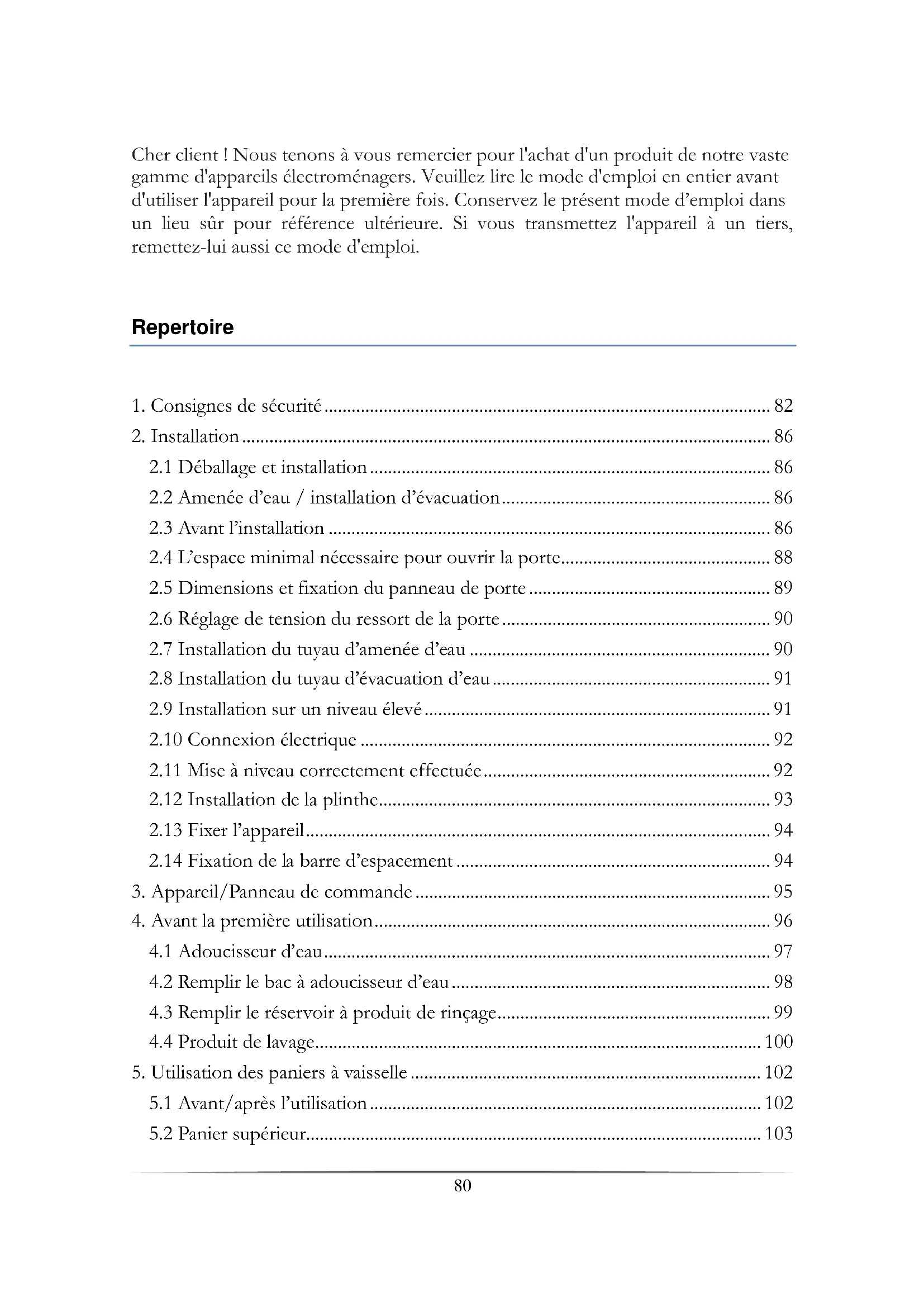 5. Utilisation des paniers à vaisselle ............................................................................. 102