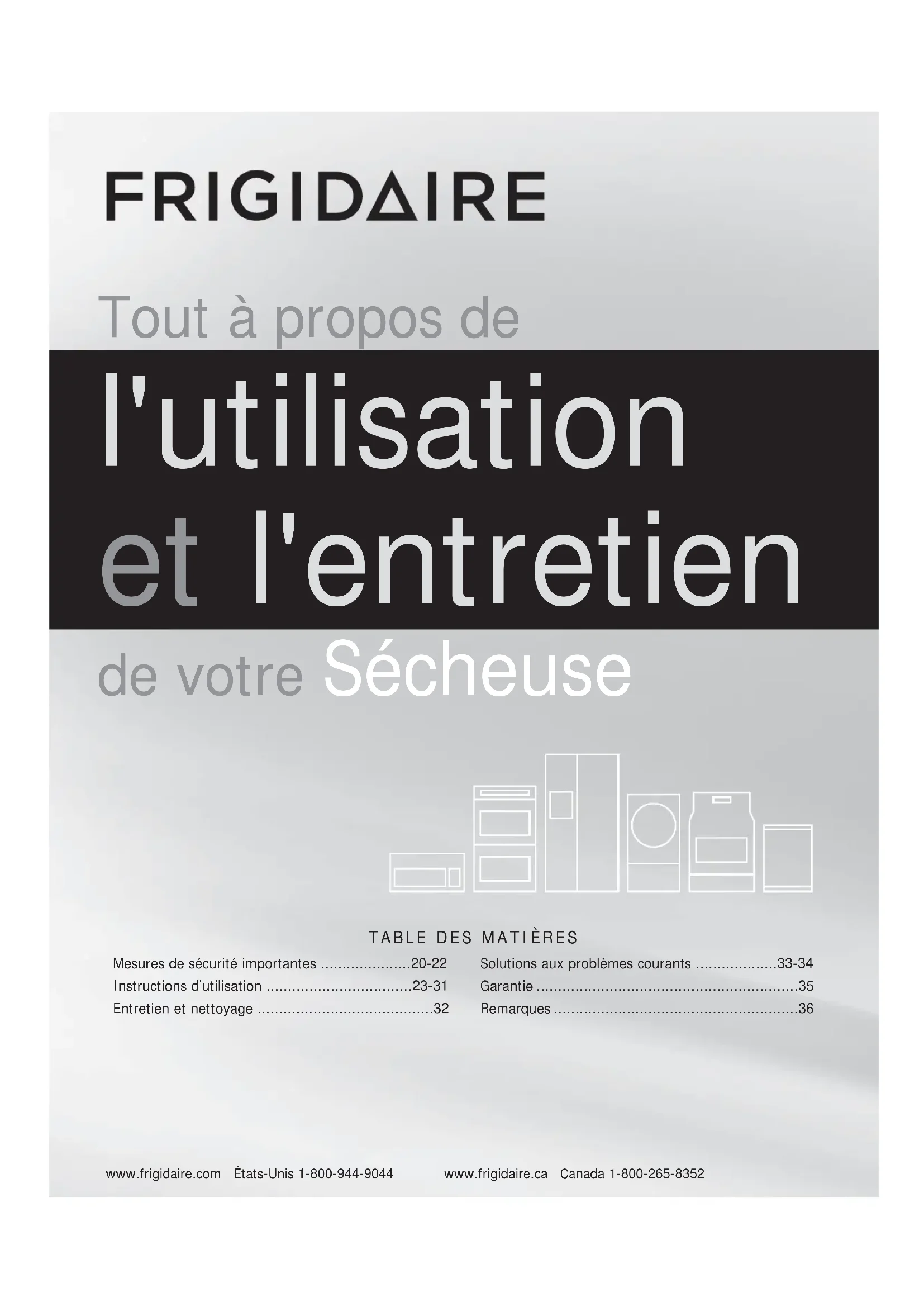 FARG1011MW - Sèche-linge FRIGIDAIRE - Notice d'utilisation et mode d'emploi gratuit
