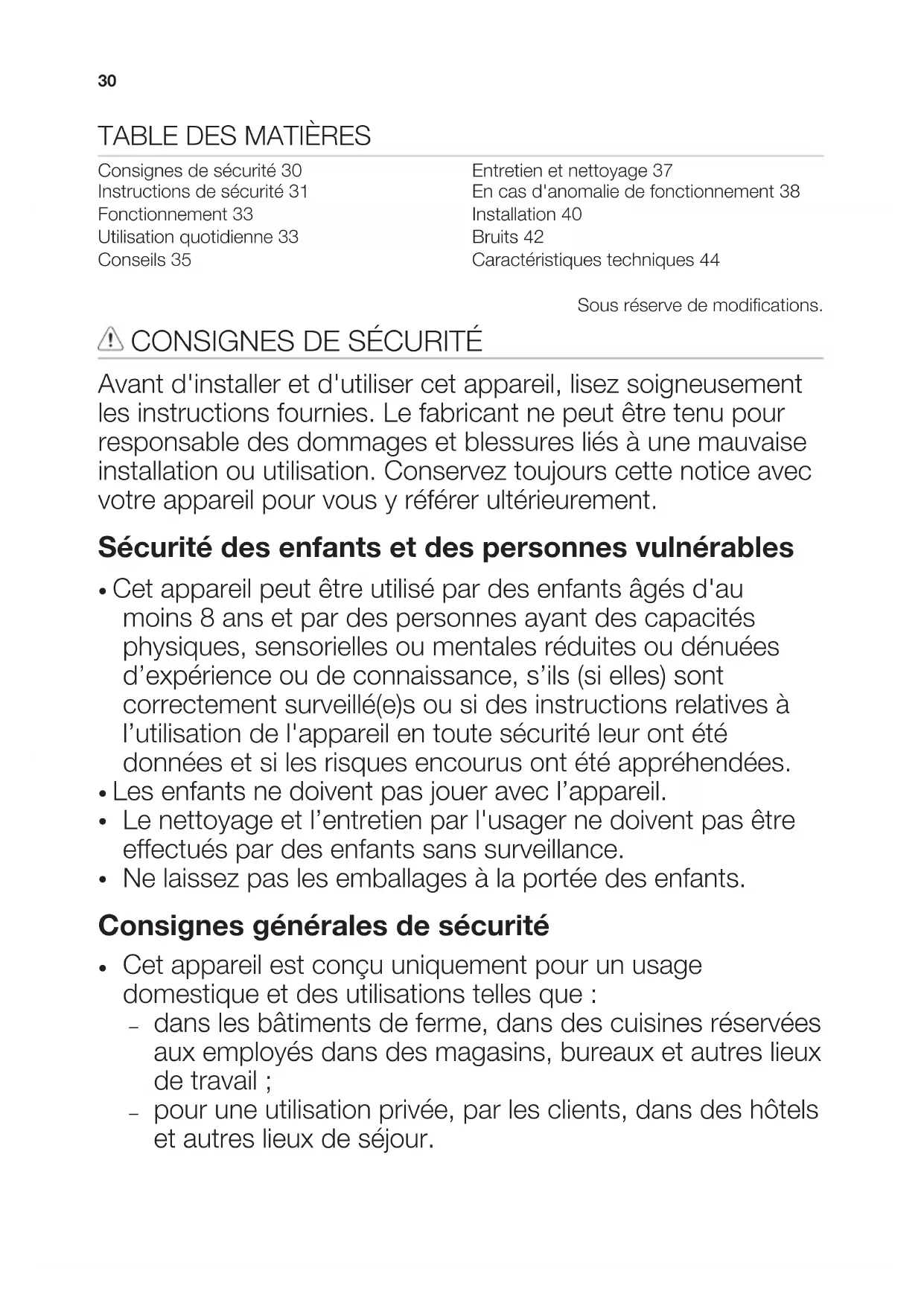 Consignes de sécurité 30