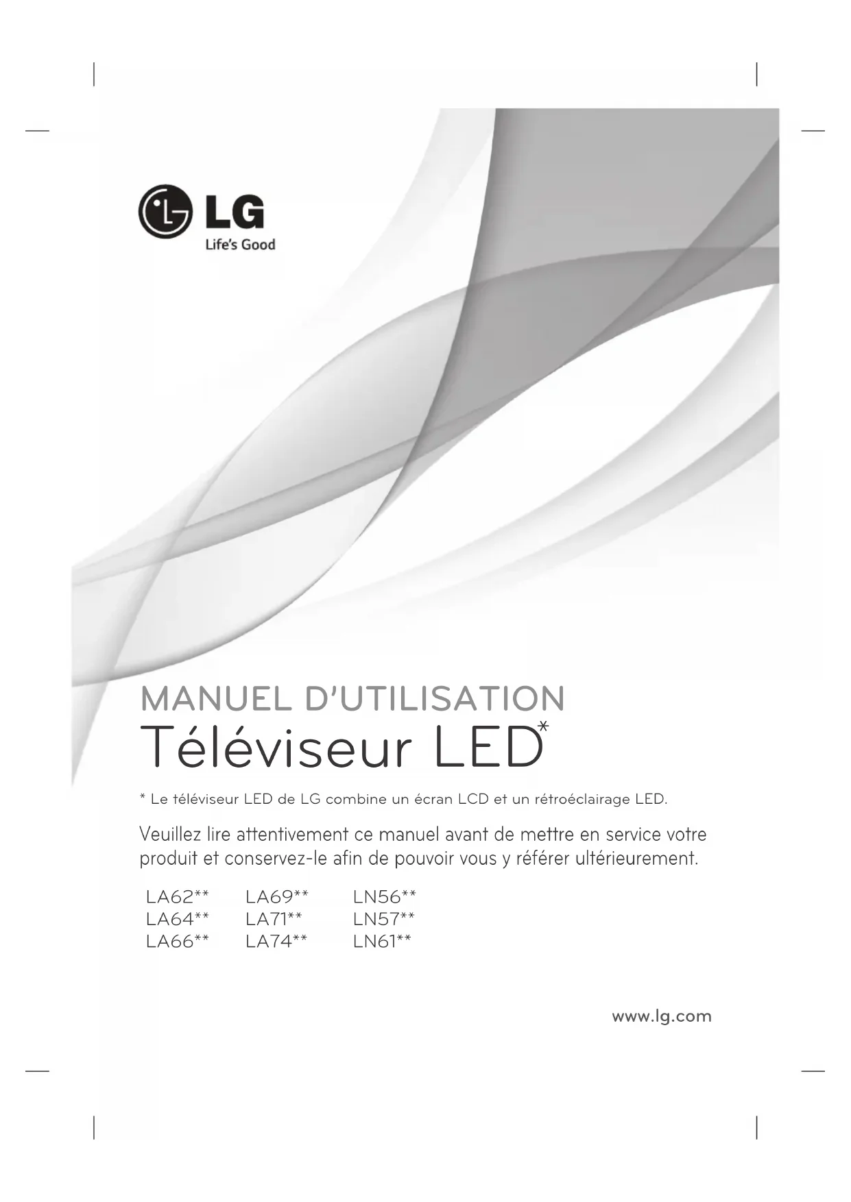 - Le téléviseur LED de LG combine un écran LCD et un rétroéclairage LED. www.lg.com LA62** LA64** LA66** LA69** LA71** LA74** LN56** LN57** LN61**2 FRANÇAIS