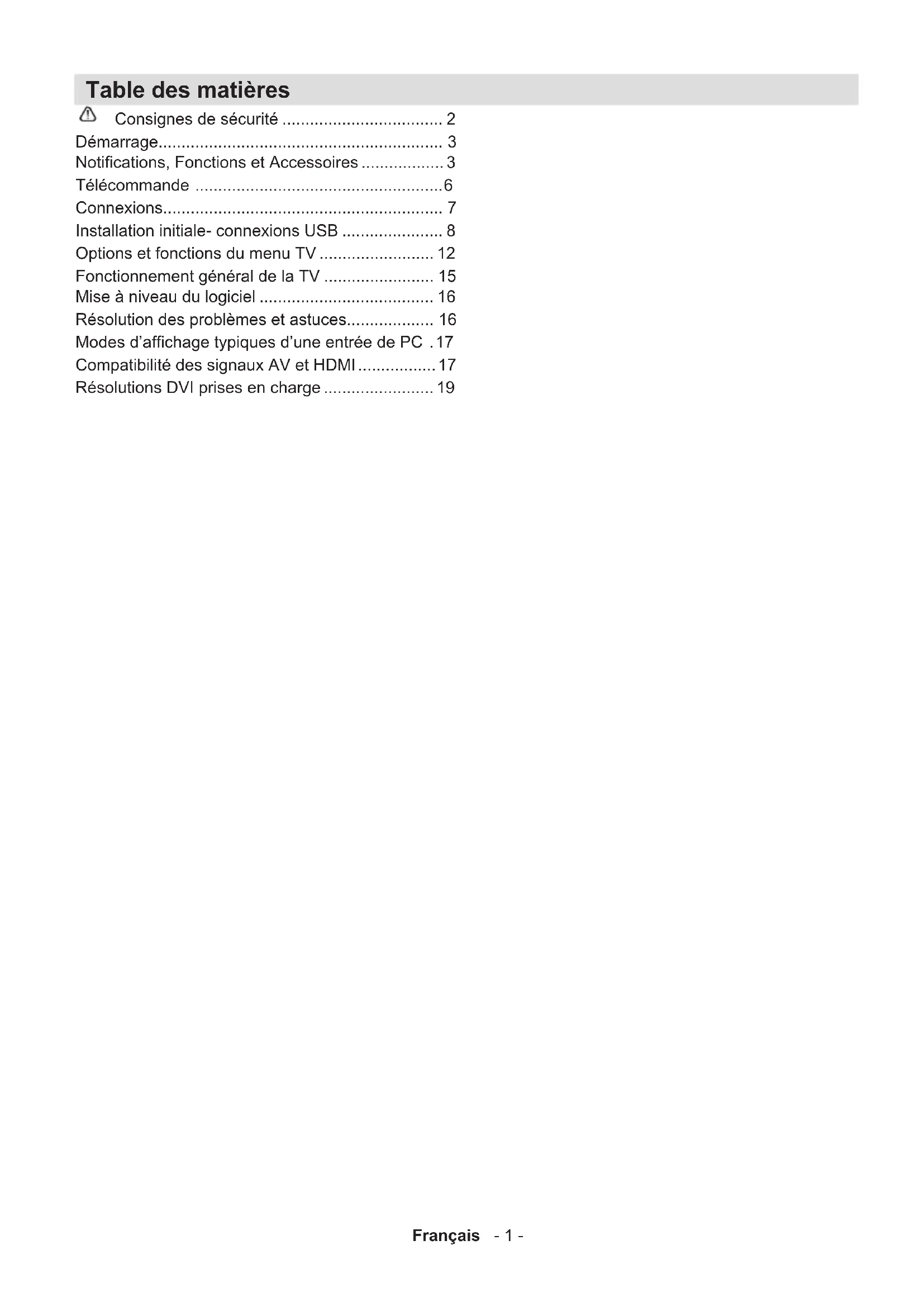 Compatibilité des signaux AV et HDMI ...... 17
