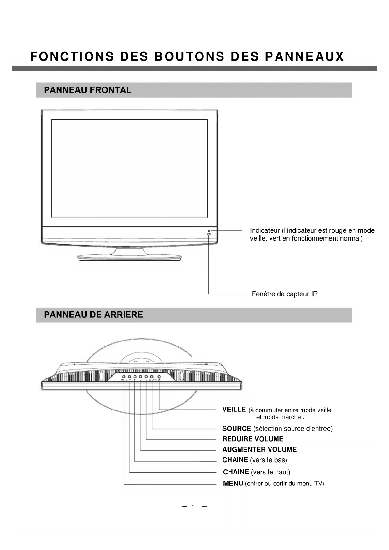 | PANNEAU FRONTAL | 1 | PANNEAU DE ARRIERE |