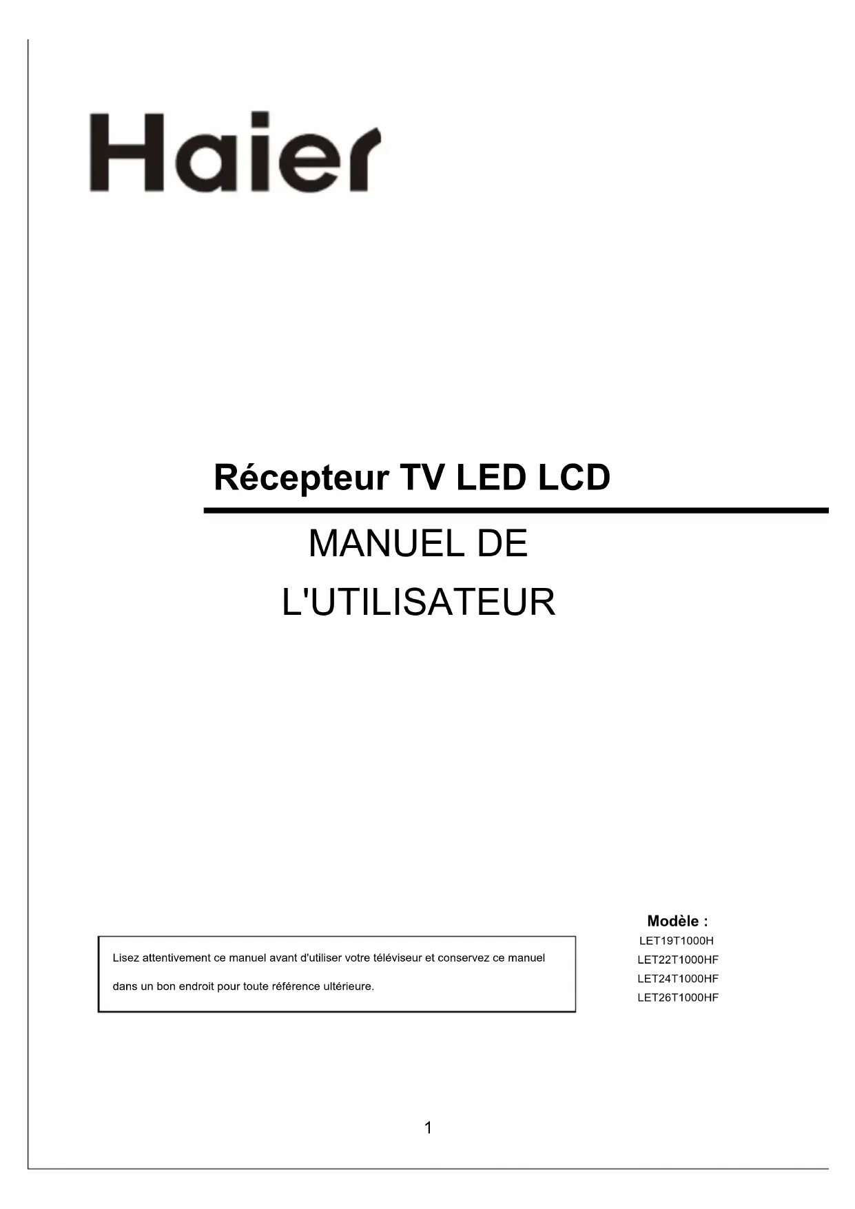 LET26T1000HF - Téléviseur HAIER - Notice d'utilisation et mode d'emploi gratuit