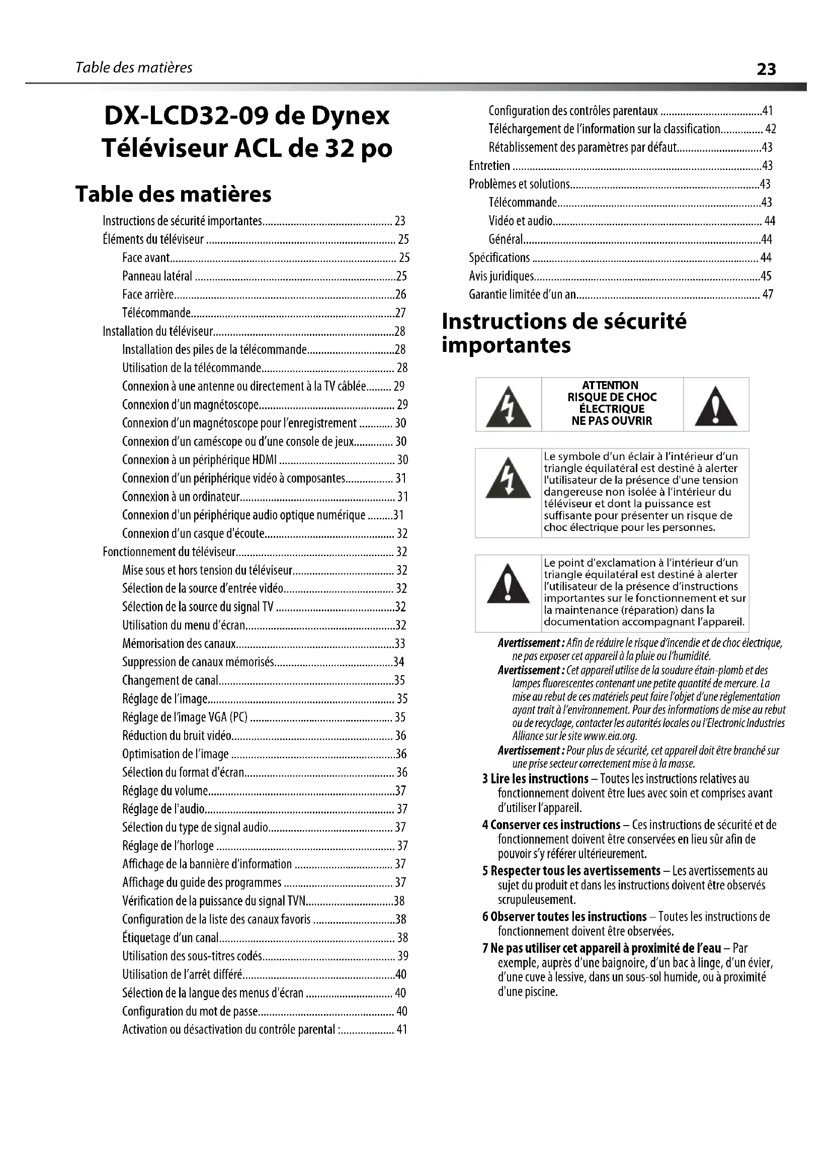 DXLCD3209 - Téléviseur Dynex - Notice d'utilisation et mode d'emploi gratuit