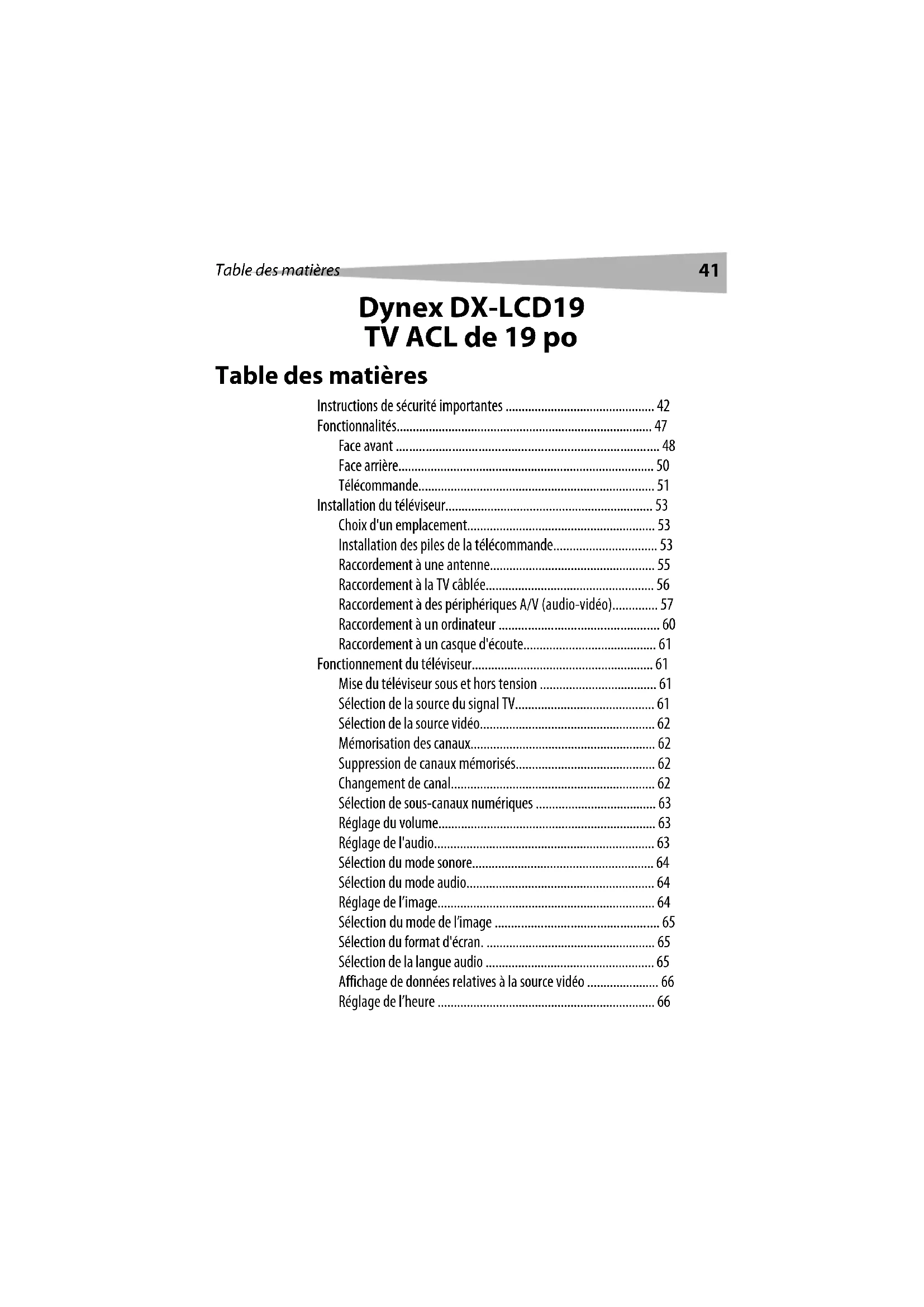 DXLCD19 - Téléviseur Dynex - Notice d'utilisation et mode d'emploi gratuit