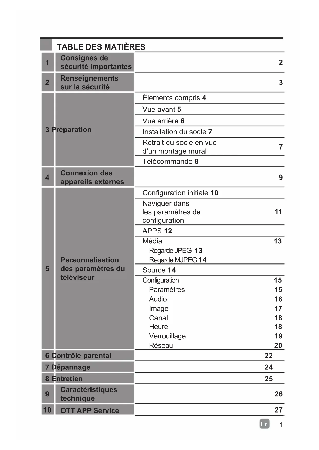 | 5 | Personnalisation des paramètres du téléviseur | Configuration initiale 10 |